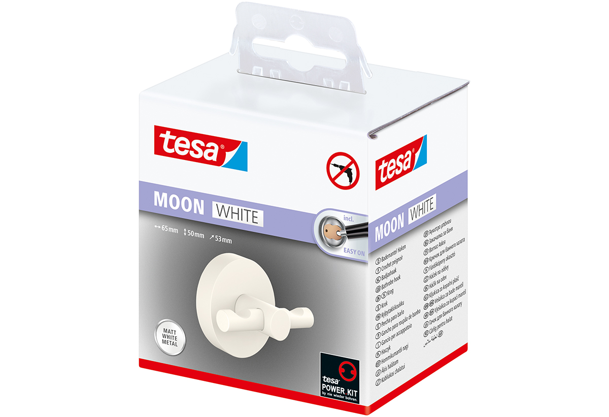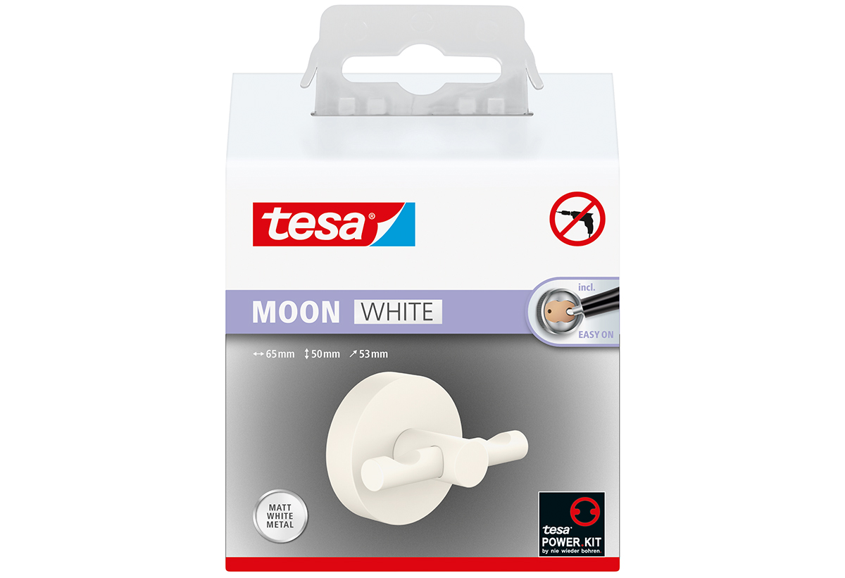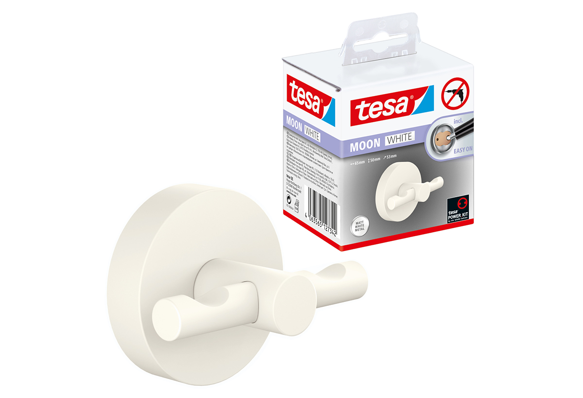 Άγκιστρο Tesa Moon Επιτοίχιο Διπλό Λευκό