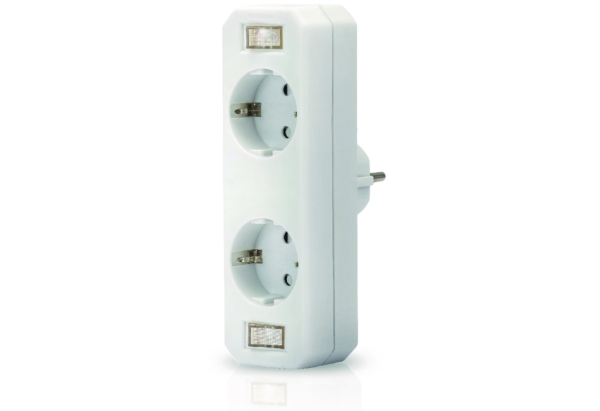 Αντάπτορας Ρεύματος Σούκο Sas σε Διπλό Σούκο με Διακόπτη Λευκός
