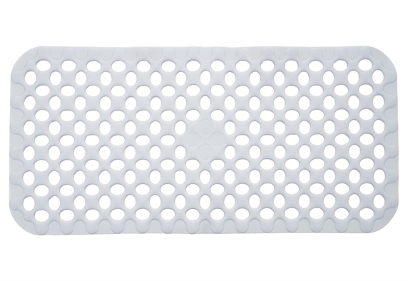 Αντιολισθητικό ταπέτο μπανιέρας Elly, λευκό, από ανθεκτικό PVC, ιδανικό για ασφαλές και άνετο μπάνιο για όλη την οικογένεια. Με δεκάδες βεντουζάκια που «κολλούν» σταθερά στον λείο πυθμένα της μπανιέρας και διάτρητο σχέδιο που επιτρέπει στο νερό να στραγγίζει γρήγορα ώστε να μειώνονται τα γλιστρήματα. Η απαλή υφή του προσφέρει άνεση στα πέλματα, ενώ το ουδέτερο λευκό χρώμα ταιριάζει διακριτικά σε κάθε μπάνιο. Με διαστάσεις 71x34cm, ταιριάζει στις περισσότερες μπανιέρες, καθαρίζεται απλά με ένα ξέβγαλμα ή με ήπιο καθαριστικό και κρεμιέται για να στεγνώνει μετά τη χρήση.
