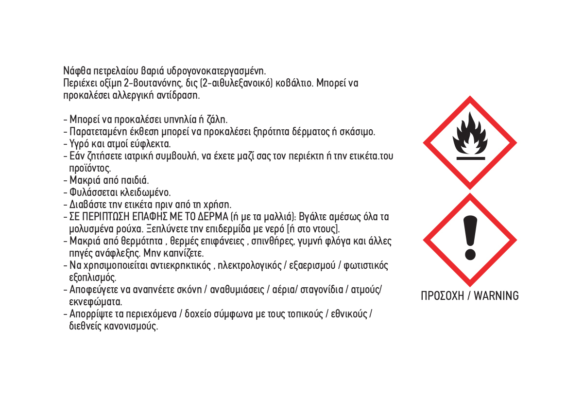 Αραίωσηέως και 5% με νέφτι για την εφαρμογή με πινέλο ή ρολό και έως 12% με διαλυτικό πιστολιού για εφαρμογή με πιστόλι
