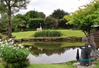Η αντλία νερού με φόντο μια μικρή λίμνη.