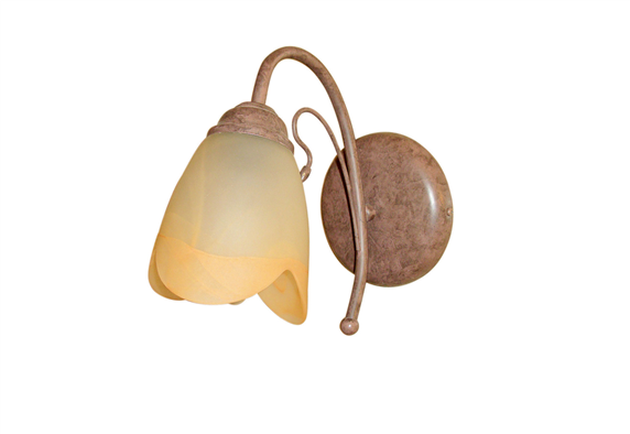 Η απλίκα τοίχου 6007 αποτελεί μια διακριτική επιλογή φωτισμού με ρετρό αισθητική που αναδεικνύει τον χώρο σου με ζεστασιά. Το μελί γυαλί προσφέρει απαλό και θερμό φως, ενώ ο μεταλλικός σκελετός σε αντικέ απόχρωση χαρίζει κλασική φινέτσα στο σύνολο. Ο κυματιστός σχεδιασμός της βάσης και η ιδιαίτερη φόρμα του γυαλιού παραπέμπουν σε λουλούδι, δημιουργώντας μια φυσική αρμονία. Ιδανική για υπνοδωμάτια, καθιστικά ή διαδρόμους που χρειάζονται ατμοσφαιρικό φωτισμό και διακοσμητική προσθήκη.
