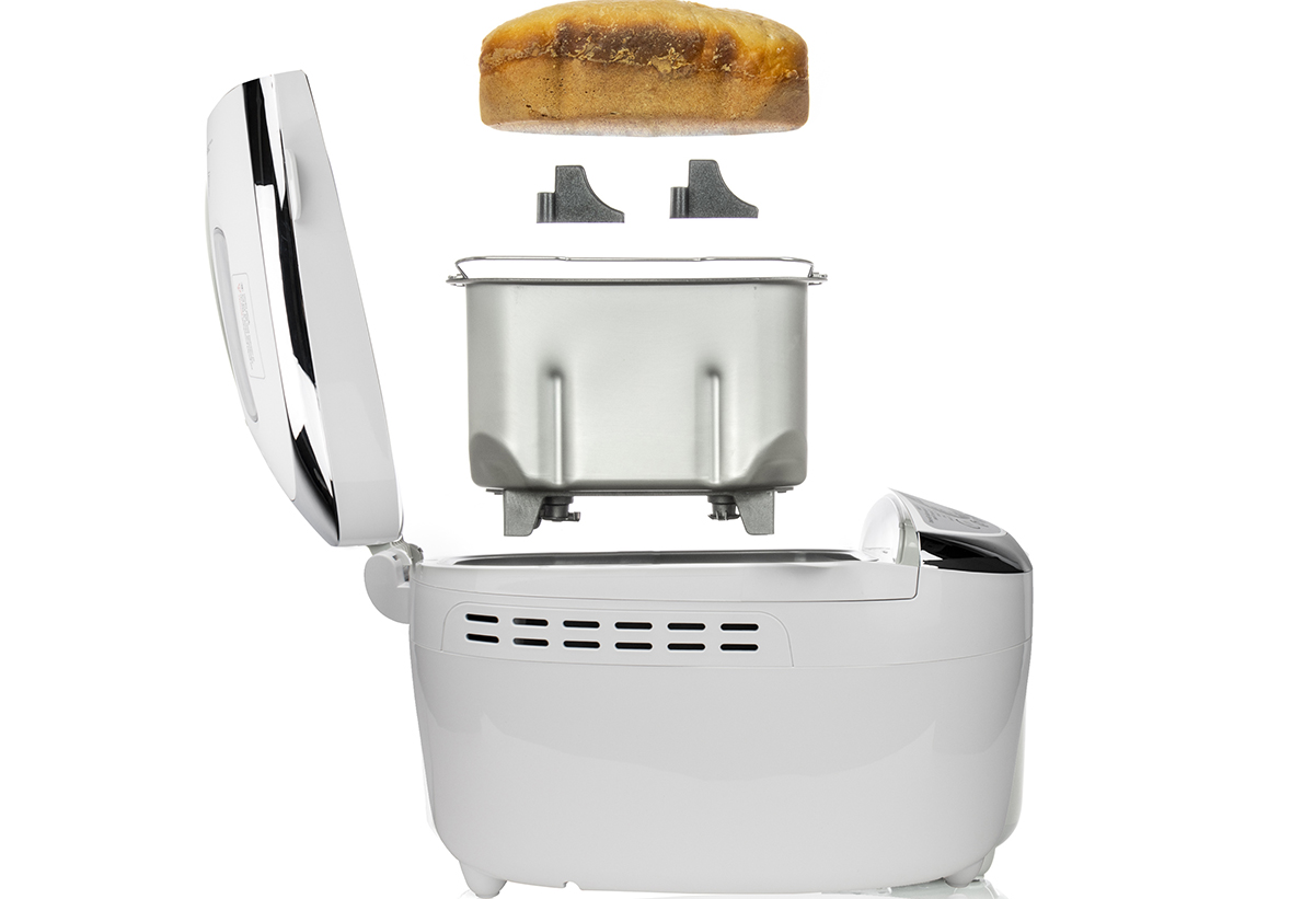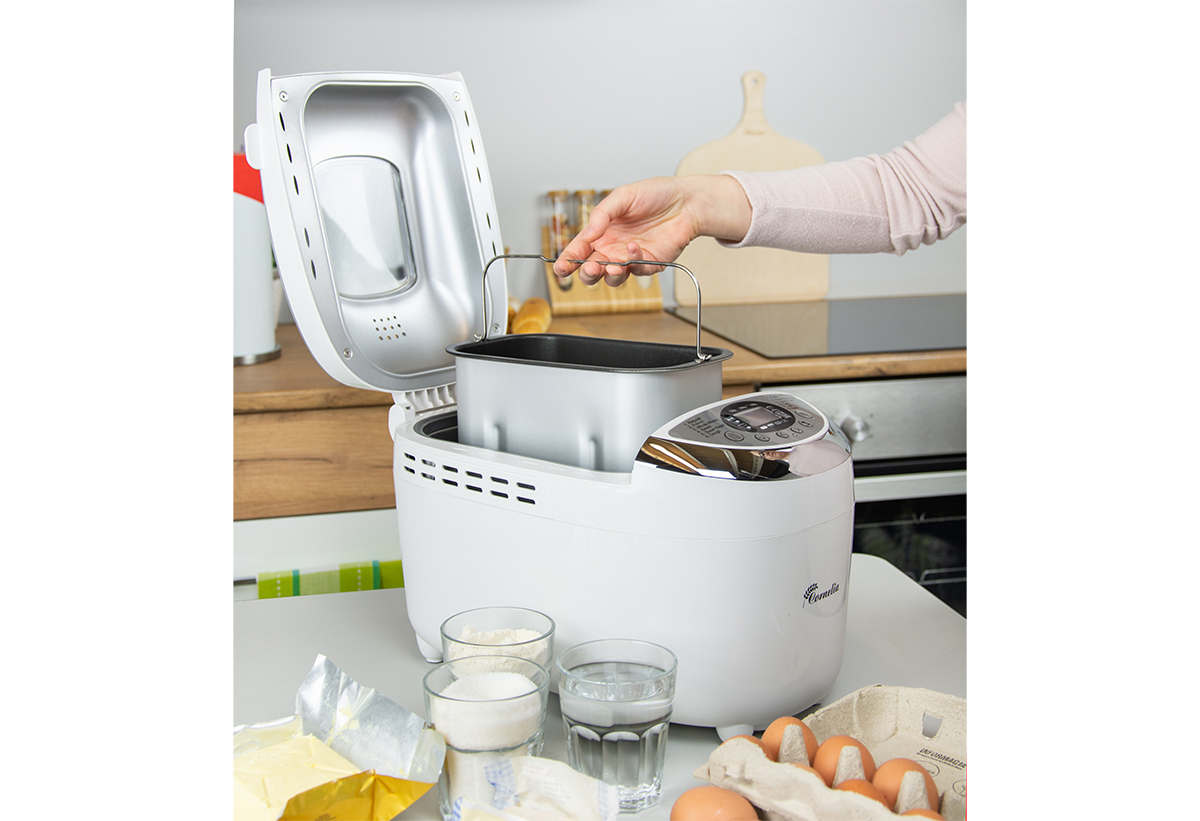 Ο εργονομικός σχεδιασμός του αρτοπαρασκευαστή σου προσφέρει απόλυτη ευκολία στη χρήση. Ο κάδος διαθέτει πρακτικό χερούλι που σου επιτρέπει να τον αφαιρείς γρήγορα και με ασφάλεια. Αυτό διευκολύνει τον καθαρισμό, ενώ η αντικολλητική επίστρωση εξασφαλίζει πως δεν θα μένουν υπολείμματα. Όλες οι λεπτομέρειες έχουν σχεδιαστεί για να κάνουν τη διαδικασία πιο άνετη, ενώ το παράθυρο παρακολούθησης σου δίνει πλήρη έλεγχο κατά το ψήσιμο.