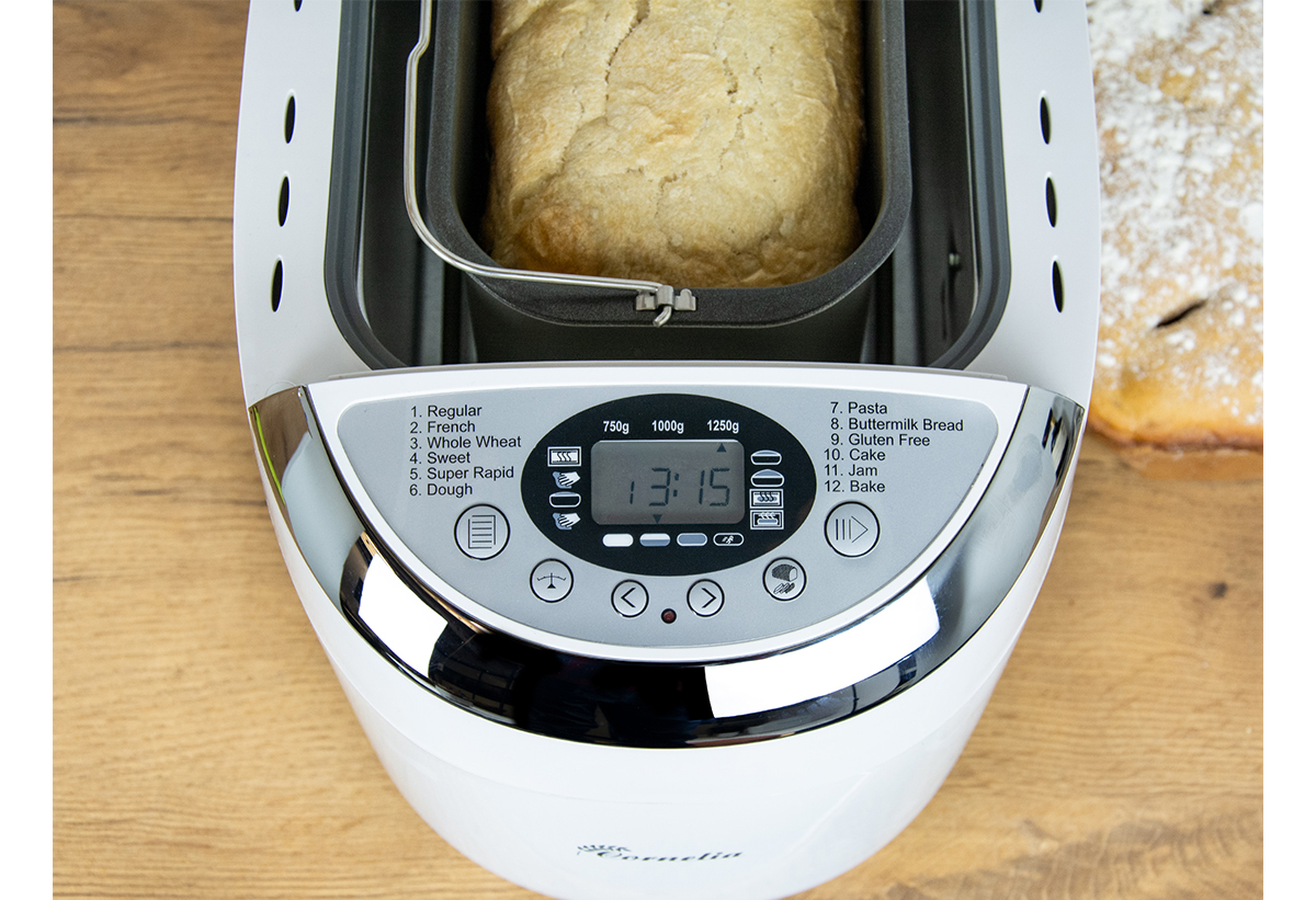 Με τον αρτοπαρασκευαστή First Austria FA-5152-3 έχεις 12 διαφορετικά προγράμματα και 17 έτοιμες συνταγές για να δημιουργήσεις ψωμί, ζύμες, μαρμελάδες και άλλα. Ρύθμισε την κόρα σε 4 επίπεδα τραγανότητας, επέλεξε το μέγεθος από 750 έως 1250 γραμμάρια και προγραμμάτισέ τον έως και 15 ώρες πριν. Ο αντικολλητικός κάδος με χερούλι και οι δύο γάντζοι ζυμώματος σου εξασφαλίζουν άνεση και αποτελεσματικότητα. Διατηρεί το ψωμί ζεστό για 60 λεπτά, αποθηκεύει τις ρυθμίσεις σε περίπτωση διακοπής ρεύματος, ενώ η LCD οθόνη κάνει τη διαδικασία ακόμα πιο εύκολη.