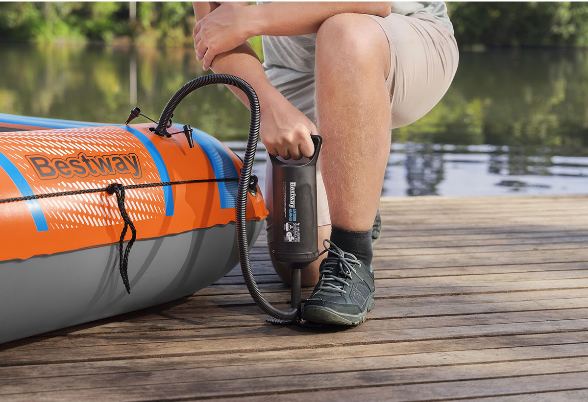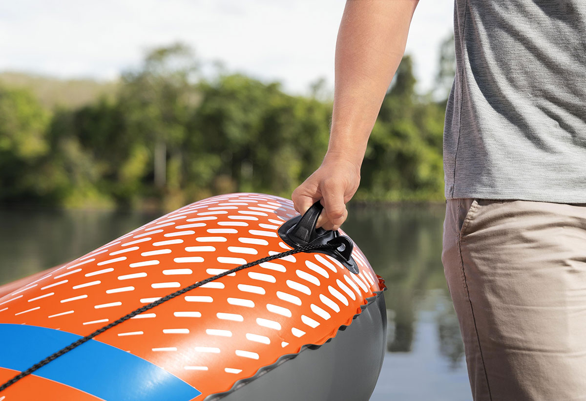 Η φουσκωτή βάρκα είναι εξαιρετική επιλογή για να απολαμβάνεις ατελείωτες ώρες στη θάλασσα με τους αγαπημένους σου. Η πορτοκαλί απόχρωση της βάρκας και ο ιδιαίτερος σχεδιασμός της θα ξεχωρίσουν, προσθέτοντας μία φωτεινή πινελιά στις καλοκαιρινές σου διακοπές. Τα υλικά κατασκευής της προσδίδουν ανθεκτικότητα στον χρόνο και τη χρήση, ενώ ταυτόχρονα διαθέτει κουπιά και τρόμπα, για να τη χρησιμοποιείς όποτε επιθυμείς. Είναι κατάλληλη για 2 άτομα.