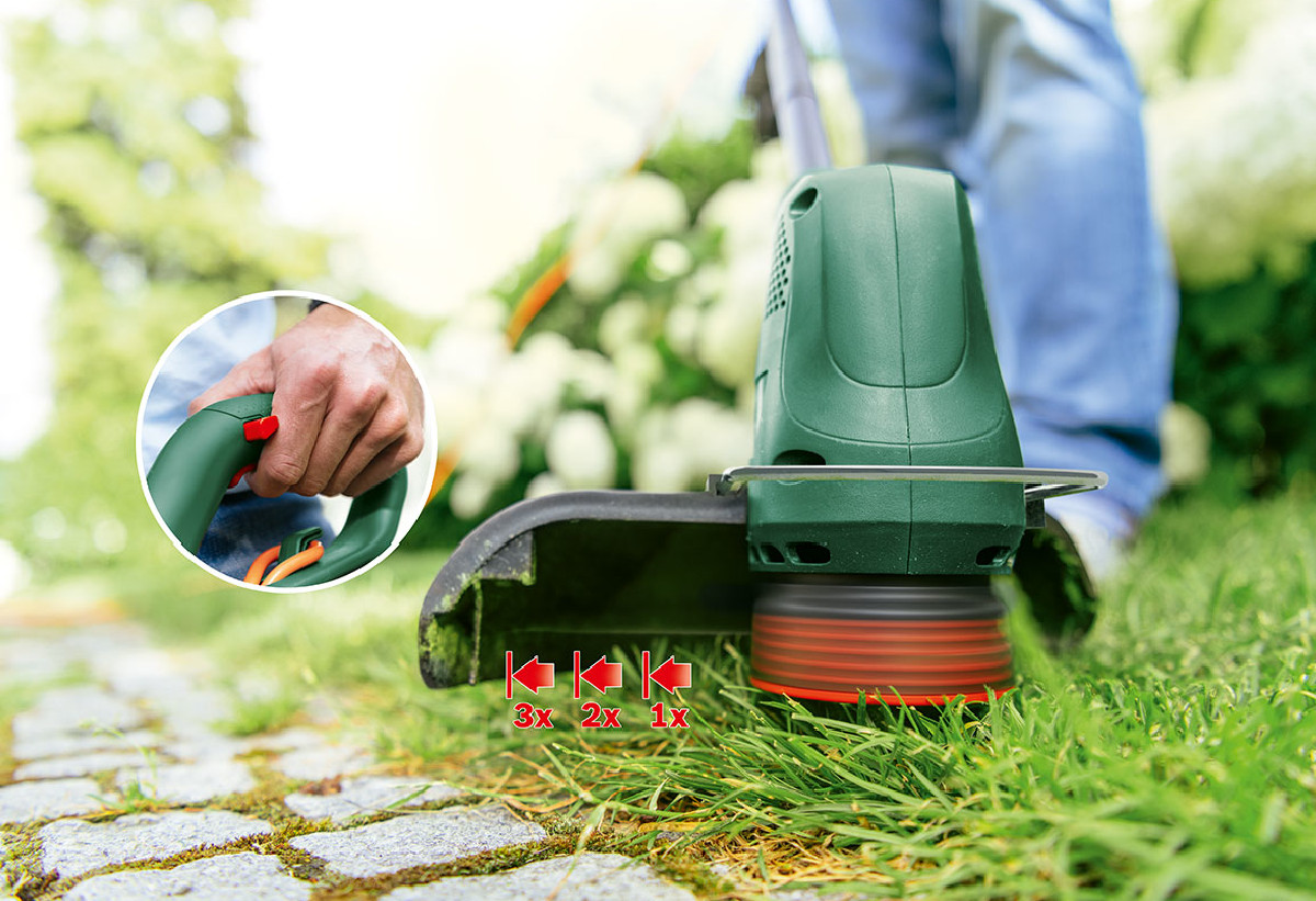 Το χλοοκοπτικό μεσινέζας ρεύματος της εταιρείας Bosch αποτελεί μία συσκευή ιδανική για κοπή χόρτου και ζιζανίων, κούρεμα του γκαζόν και καλύπτει με ακρίβεια ακόμα και τις άκρες του κήπου σου. Πρόκειται για μία ελαφριά μηχανή, που είναι κατασκευασμένη με τέτοιο τρόπο ώστε να είναι άνετη κατά τη λειτουργία της, χάρις το ελαφρύ βάρος του και τη δεύτερη λαβή που διαθέτει, μειώνοντας την κούρασή σου όταν τη χρησιμοποιείς. Επιπλέον, το ημιαυτόματο καρούλι καταργεί την ανάγκη για εκτέλεση ρυθμίσεων χειροκίνητα, καθώς τροφοδοτεί τη μεσινέζα με κάθε πάτημα της σκανδάλης, με αποτέλεσμα να μπορείς να το χρησιμοποιείς συνεχώς και με απόλυτη λειτουργικότητα.