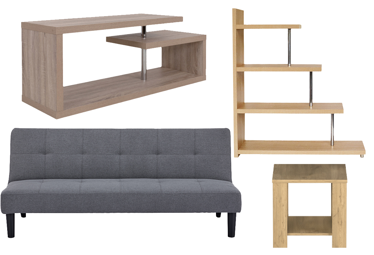 Η βιβλιοθήκη σου δίνει τον ιδανικό χώρο για βιβλία και διακοσμητικά, ο καναπές-κρεβάτι προσφέρει άνεση και πρακτικότητα για καθημερινή χρήση και φιλοξενία, ενώ το έπιπλο τηλεόρασης αναδεικνύει το κέντρο ψυχαγωγίας του σαλονιού σου. Το βοηθητικό τραπέζι συμπληρώνει αρμονικά τη σύνθεση, χαρίζοντάς σου ευκολία για να τοποθετήσεις ό,τι χρειάζεσαι δίπλα σου. Με ενιαία αισθητική και ποιοτική κατασκευή, το σετ αυτό μετατρέπει το σαλόνι σου σε χώρο λειτουργικό, καλαίσθητο και άνετο.