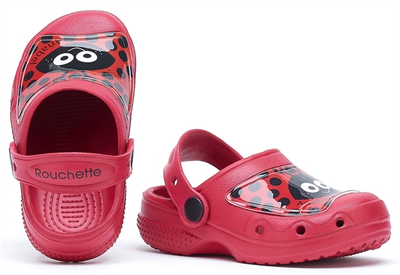 Παιδικά παπούτσια clogs από την εταιρεία Rouchette, σε κόκκινο χρώμα και μέγεθος 24 Jr. Είναι κατασκευασμένα από καουτσούκ, το οποίο επιφέρει ανθεκτικότητα στο χρόνο αλλά και ευελιξία και άνεση στο πόδι. Είναι ιδανικά για όλες τις χρήσεις, ιδίως για δύσβατα μέρη, όπως θάλασσα κ.α. προσφέροντας σταθερότητα και ευκολία περπατήματος.