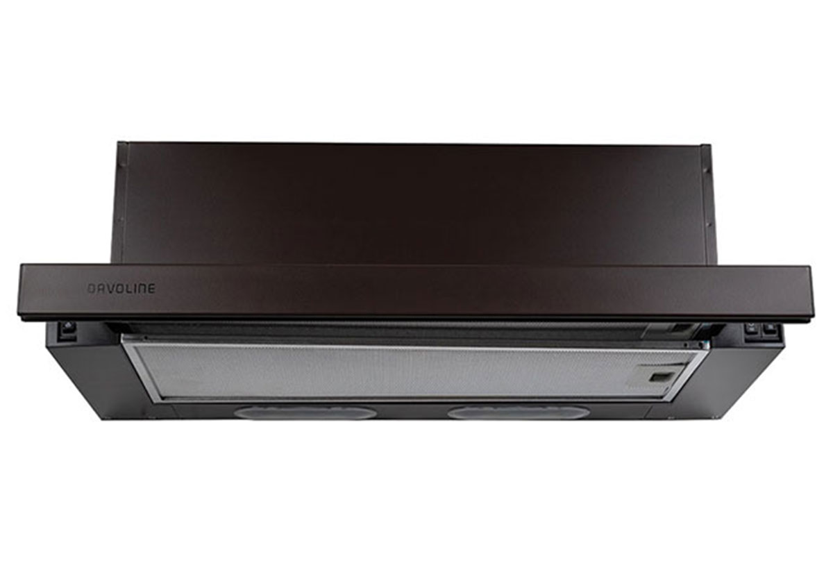 Ο απορροφητήρας της εταιρείας Davoline είναι κατασκευασμένος με τέτοιο τρόπο, ώστε να τοποθετείται σε ντουλάπι και να σύρεται προς τα έξω μόνο το μέρος που περιέχει τα φίλτρα. Αποτελεί μια συσκευή ιδανική για κάθε κουζίνα, καθώς είναι διαμορφωμένη με ιδιαίτερο design σε καφέ χρώμα, είναι διακριτική εφόσον δε φαίνεται το υπόλοιπο μέρος της και μπορεί να ταιριάξει εύκολα με την υπόλοιπη διακόσμηση στην κουζίνα σου. Διαθέτει 3 βαθμίδες λειτουργίες και φωτισμό LED με 2 λαμπτήρες, με μεγάλη διάρκεια και χαμηλή κατανάλωση ενέργειας. Επιπλέον, υπάρχει δυνατότητα πλύσης των μεταλλικών φίλτρων του είτε στο χέρι είτε στο πλυντήριο για μακροχρόνια χρήση τους, ενώ μπορεί να χρησιμοποιηθεί και με φίλτρα άνθρακα.