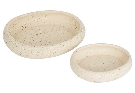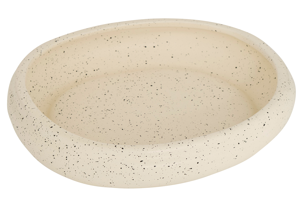 Ο διακοσμητικός δίσκος Atmosphera Wonj έρχεται σε σετ 2 τεμαχίων και χαρίζει μια ήρεμη, γήινη πινελιά στο χώρο σου. Είναι κατασκευασμένος από δολομίτη, υλικό κεραμικής φύσης με ωραία μάζα και στιβαρότητα, ώστε να αντέχει στη χρήση χωρίς να χάνει την αισθητική του. Το απαλό εκρού με το πιτσιλωτό εφέ θυμίζει φυσική πέτρα και δένει υπέροχα με σκανδιναβικό, μίνιμαλ ή μποέμ στιλ. Χρησιμοποίησέ τους για ρεσώ, αρωματικά, κοσμήματα ή κλειδιά στην είσοδο, αλλά και ως βάση για μικρά φυτά ή ένα μπουκάλι αρώματος στο μπάνιο. Ο μεγάλος δίσκος έχει διαστάσεις περίπου 25x22cm, ενώ ο μικρότερος «φωλιάζει» μέσα του για εύκολη αποθήκευση και ευέλικτο σετάρισμα σε ράφι, κομοδίνο ή τραπεζάκι σαλονιού. Με τη βελούδινη υφή και το στρογγυλεμένο χείλος, θα αναβαθμίσεις αβίαστα το καθημερινό σου ντεκόρ και θα οργανώνεις κομψά τα μικροαντικείμενα που θες πάντα να έχεις τακτοποιημένα.