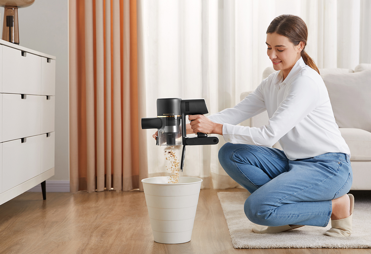 Η ευκολία αδειάσματος του δοχείου συλλογής σκόνης με ένα πάτημα, σε συνδυασμό με το πλενόμενο κυκλωνικό σύστημα πολλαπλών κώνων, το φίλτρο, την περιστρεφόμενη κυλινδρική βούρτσα και το προφίλτρο, απλοποιεί σημαντικά τη διαδικασία καθαρισμού.
