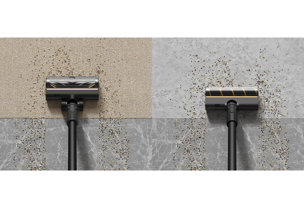 Ένας προσαρμόσιμος, μαλακός κύλινδρος βούρτσας με κεφαλή διευκολύνει τον καθαρισμό βρομιάς, σκόνης και τριχών σε οποιοδήποτε άλλο τύπο δαπέδου. Η ευελιξία διευκολύνει τον καθαρισμό γύρω από τα πιο στενά περιγράμματα και τις γωνίες.