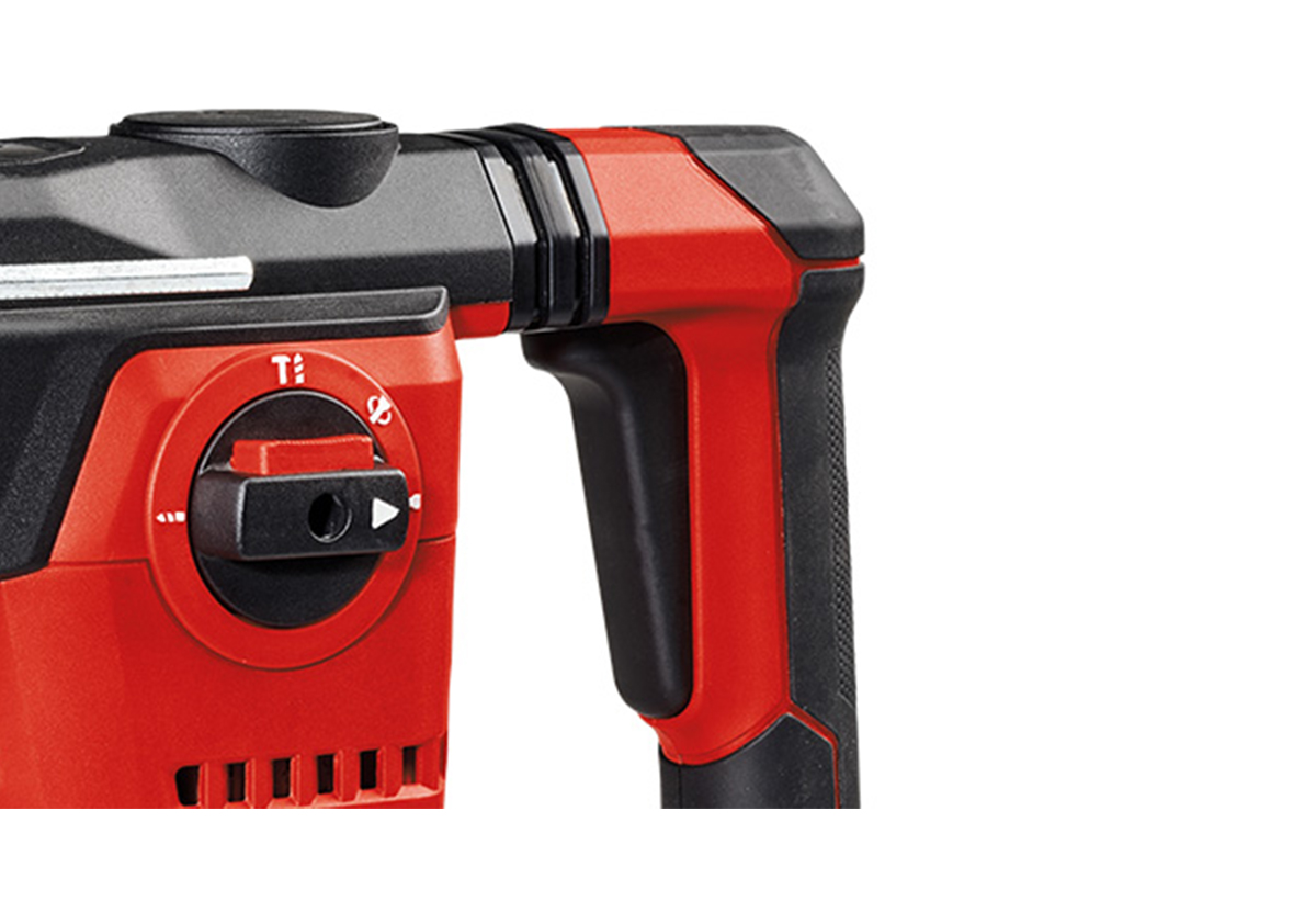 Για καλύτερο χειρισμό κατά την αντιμετώπιση σκληρών υλικών, το περιστροφικό πιστολέτο διαθέτει μια κύρια λαβή με αντικραδασμική προστασία. Υπάρχουν μεγάλες μαλακές επιφάνειες λαβής για σταθερό, ασφαλές κράτημα και η πρόσθετη λαβή έχει ανάγλυφη επιφάνεια για ασφαλή στερέωση. Το στοπ ασφαλείας υπερφόρτωσης παρέχει βελτιωμένη ασφάλεια χρήστη. Επιπλέον, παρέχεται ένα πρακτικό κλιπ καλωδίου για τη στερέωση του τυλιγμένου καλωδίου στο περιστροφικό πιστολέτο.