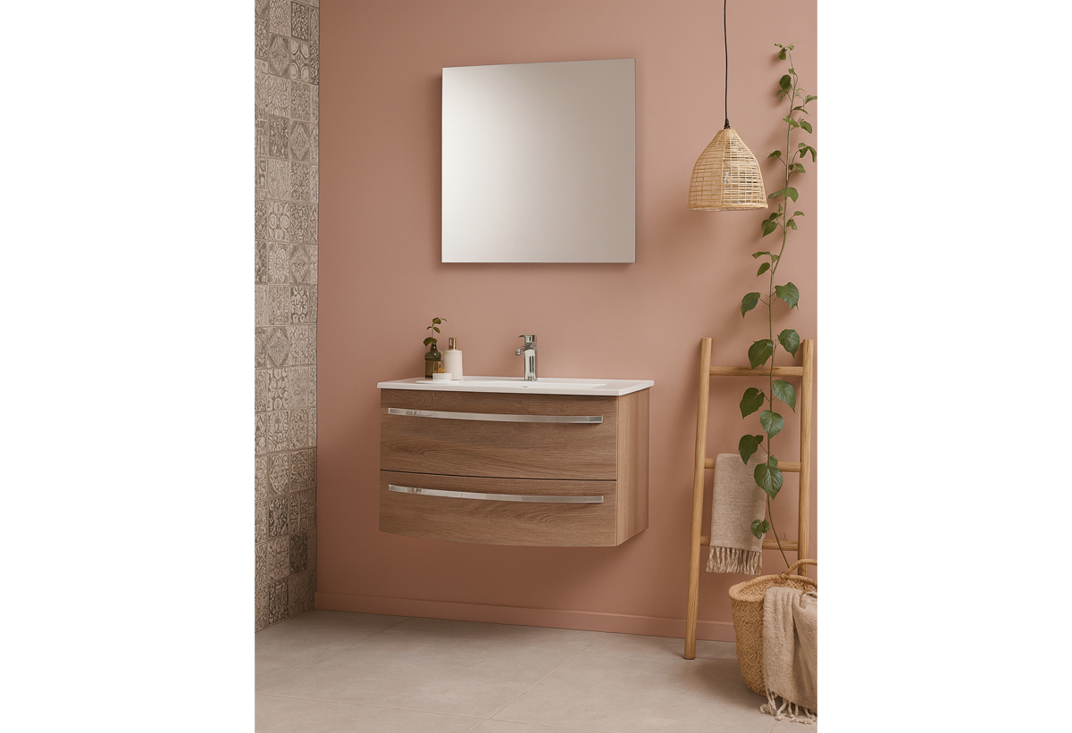 Έπιπλο Μπάνιου με Καθρέπτη Adriatica Oscar 80cm Ανοιχτό Καφέ