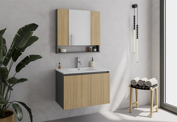 Έπιπλο Μπάνιου με Καθρέπτη Drop Terra 75cm Ανθρακί/Δρυς