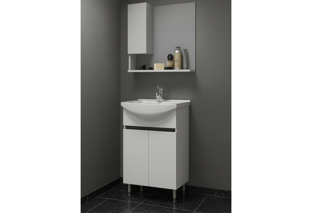 Έπιπλο Μπάνιου με Καθρέπτη & Ερμάριο Αριστερά Drop Mare 55cm Λευκό