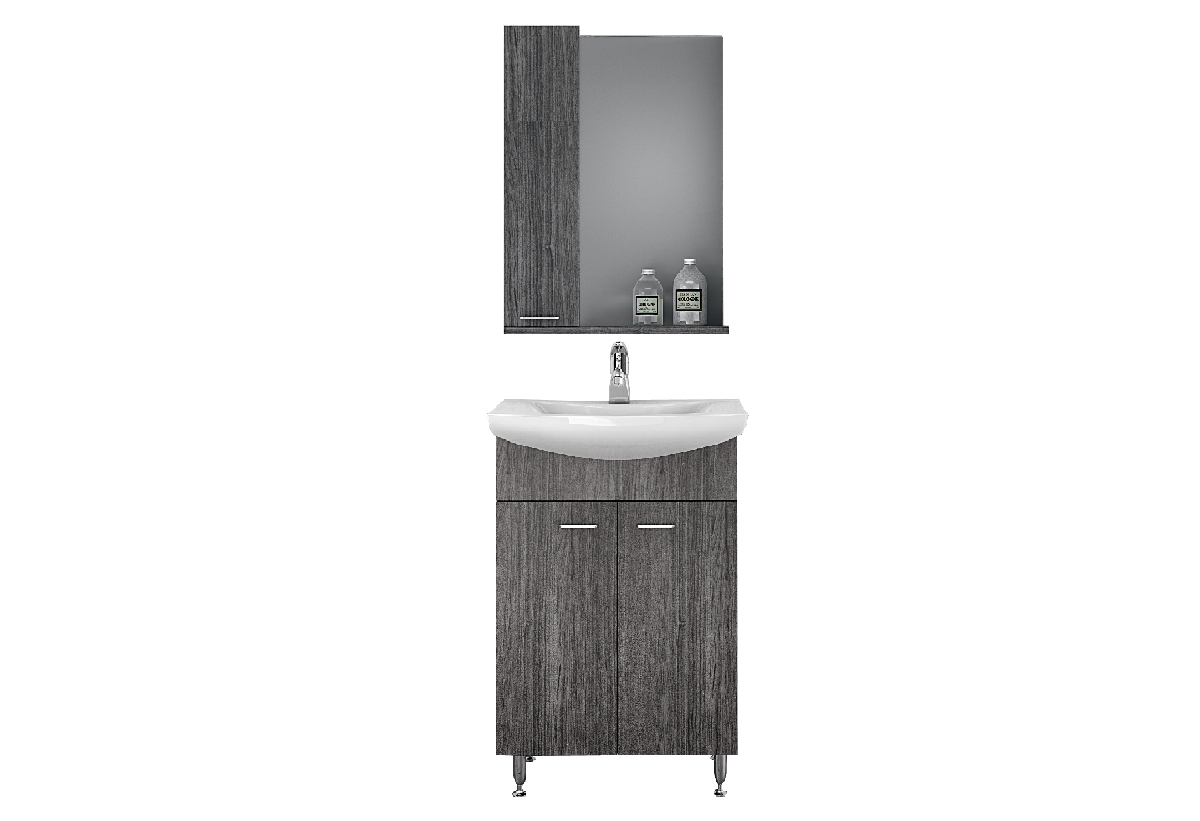 Έπιπλο Μπάνιου με Καθρέπτη & Ερμάριο Αριστερά Drop Step 55cm Ανθρακί