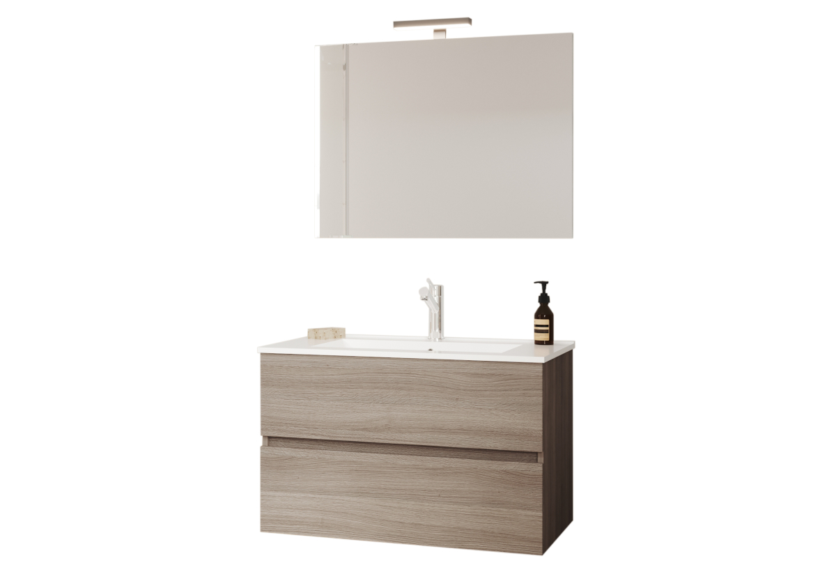 Έπιπλο Μπάνιου με Καθρέπτη Savini Due Easy Rovere 80cm Μπεζ