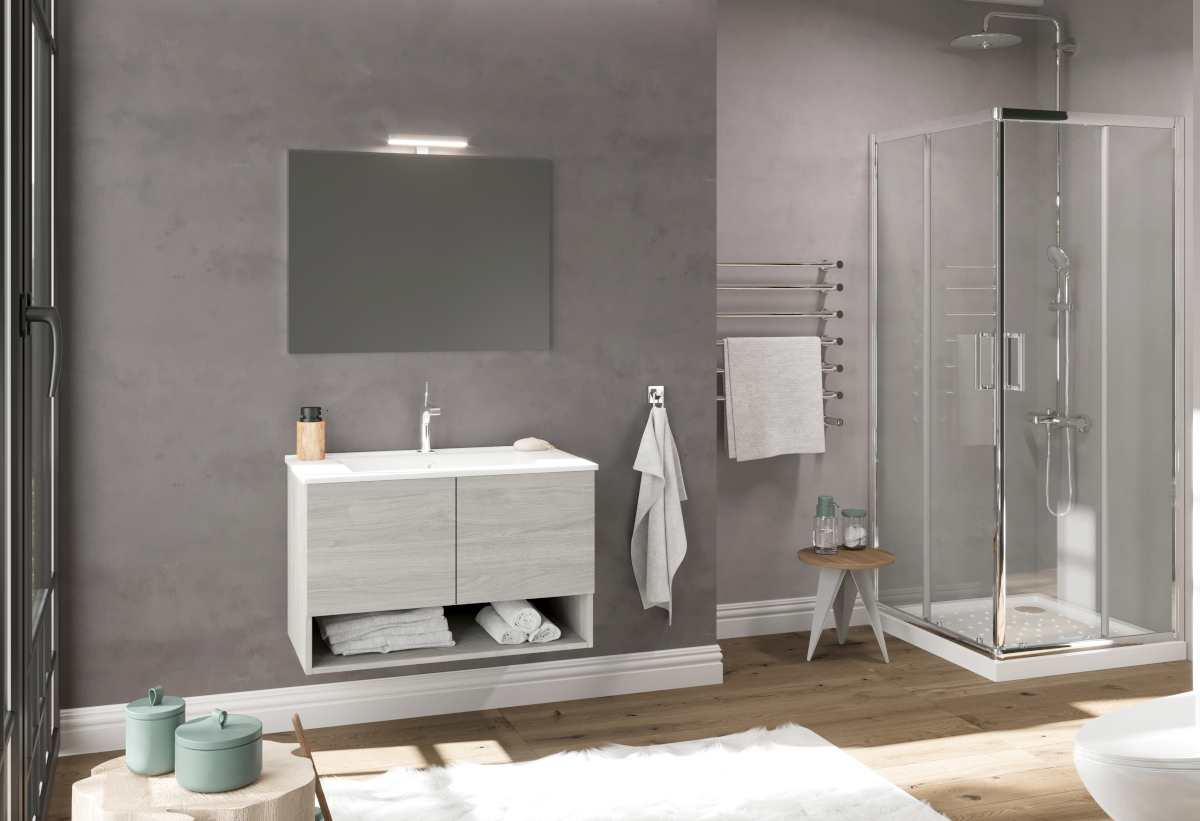 Έπιπλο Μπάνιου με Καθρέπτη Savini Due Oslo Rovere 80cm Γκρι