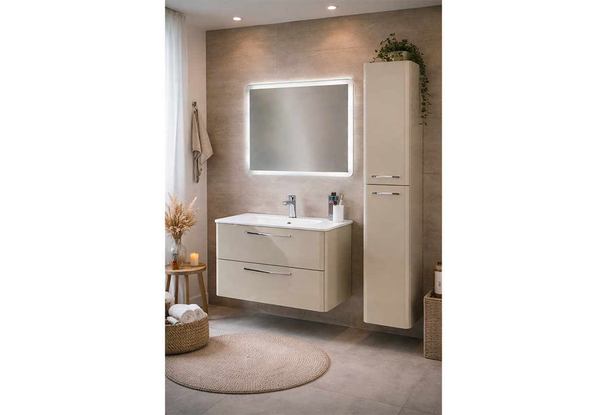 Έπιπλο Μπάνιου με Καθρέπτη & Στήλη Falegnameria Adriatica Best 80cm Ανοιχτό Γκρι