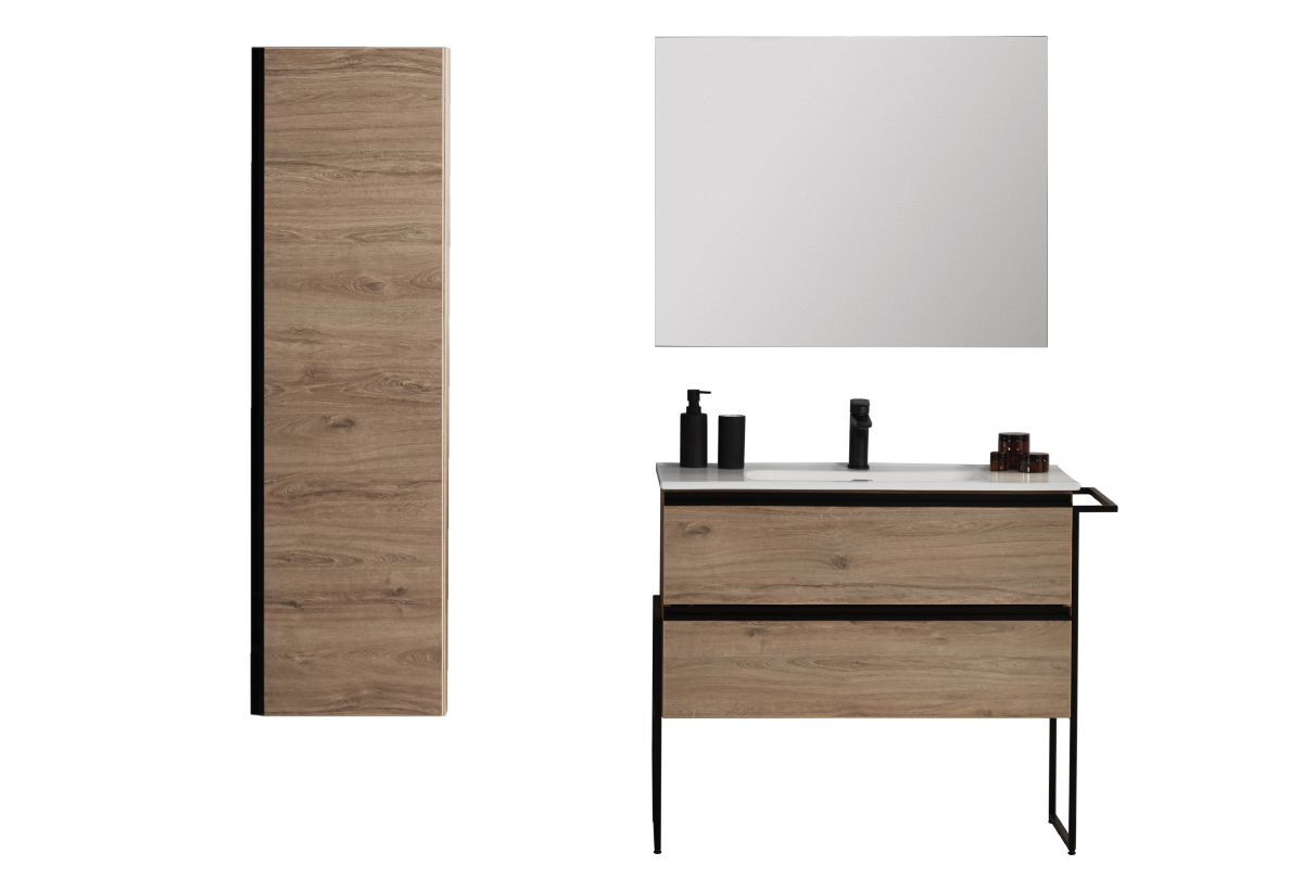Έπιπλο Μπάνιου με Καθρέπτη & Βάσεις & Στήλη Adriatica York 90cm Δρυς