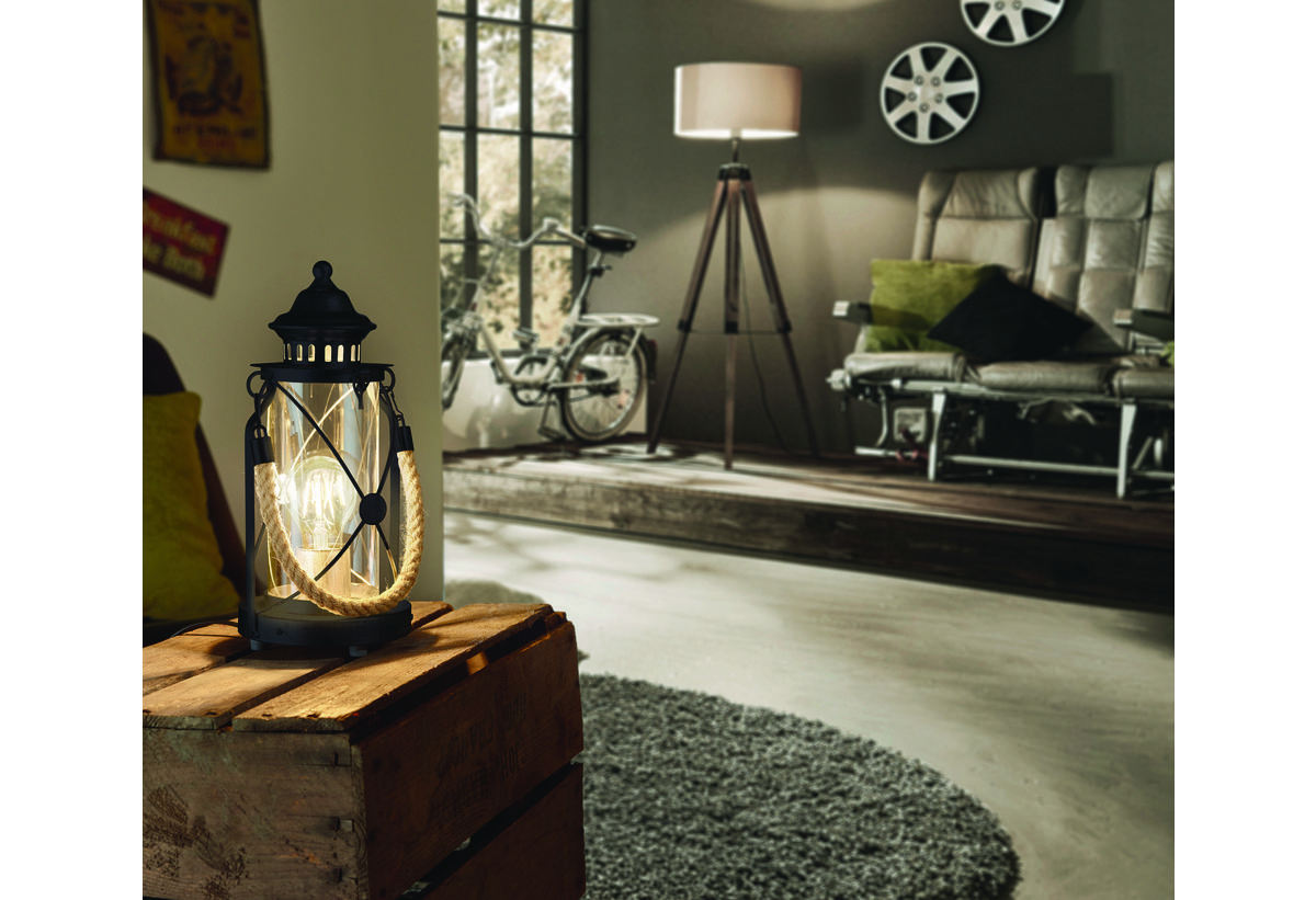 Δώσε στον χώρο σου ατμόσφαιρα με vintage χαρακτήρα επιλέγοντας το επιτραπέζιο φωτιστικό φανάρι Eglo Bradford. Ο συνδυασμός γυαλιού και μετάλλου σε μαύρη απόχρωση δημιουργεί ένα διαχρονικό αποτέλεσμα που ξεχωρίζει. Το διάφανο γυάλινο σώμα αναδεικνύει τη λάμπα και χαρίζει ζεστό, ατμοσφαιρικό φωτισμό, ενώ οι μεταλλικές λεπτομέρειες και το σχοινί στο πλάι ενισχύουν το industrial ύφος του. Τοποθέτησέ το σε μπουφέ, κονσόλα ή βοηθητικό τραπεζάκι και δημιούργησε μια ζεστή, προσεγμένη γωνιά με έντονη διακοσμητική ταυτότητα.