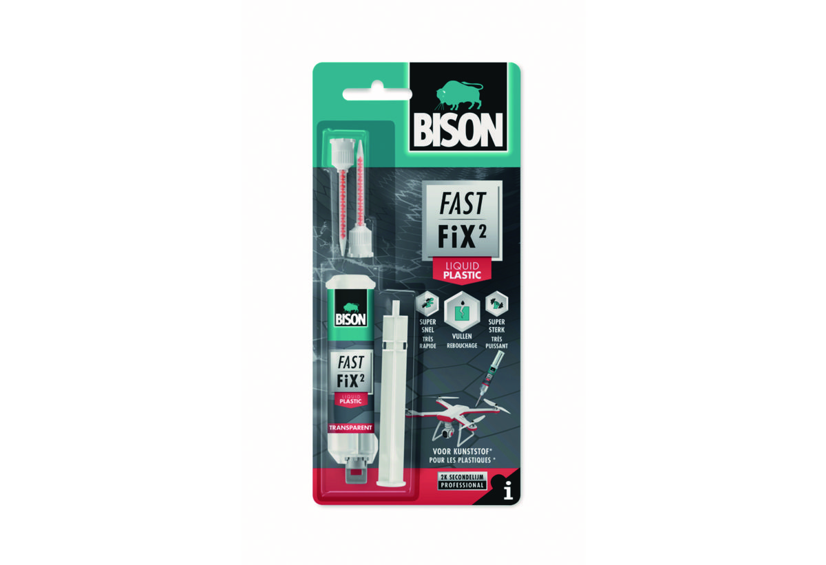 Εποξική κόλλα Bison Fast Fix2 Liquid Plastic. 2 συστατικών σε διάφανη απόχρωση. Συσκευασία 10 g. Αδιάβροχη.