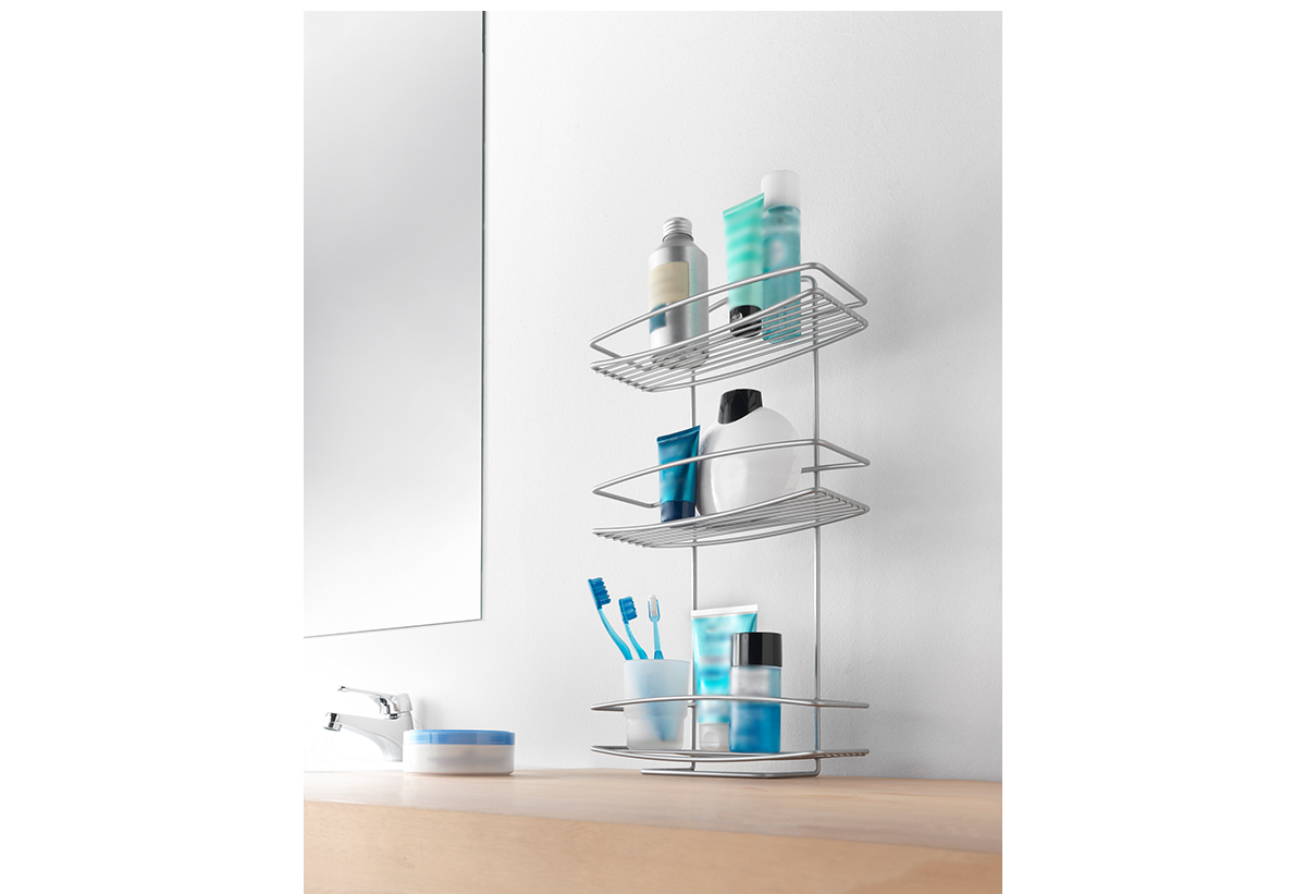 Η τριόροφη εταζέρα μπάνιου Onda συνδυάζει κομψότητα και λειτουργικότητα, προσφέροντάς σου άφθονο χώρο για να οργανώνεις όλα σου τα προϊόντα περιποίησης.