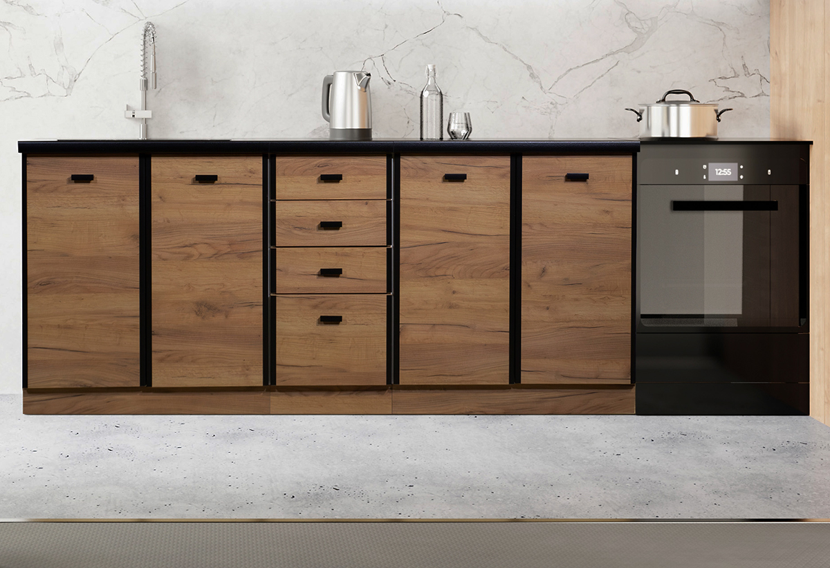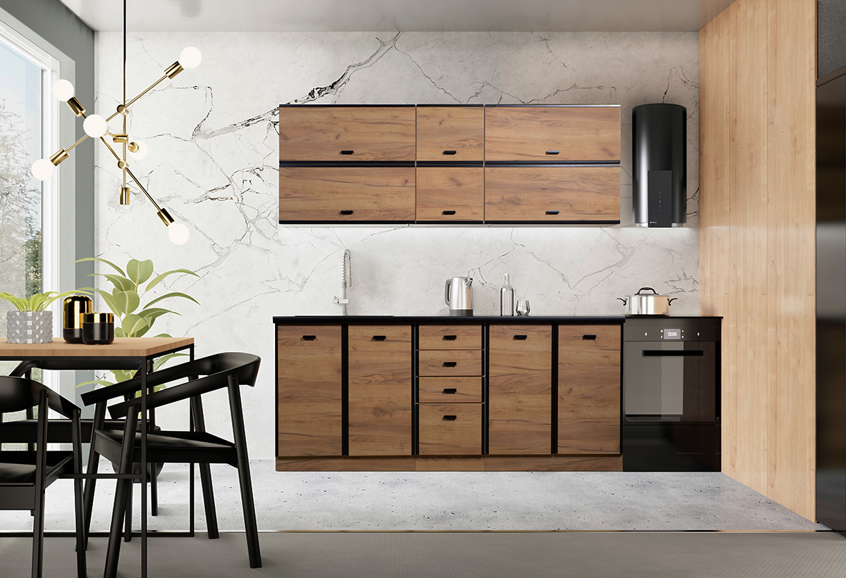 Έτοιμη Κουζίνα B&W Style Melia Δρυς Μ200xΠ45xΥ72/85cm με Πάγκο