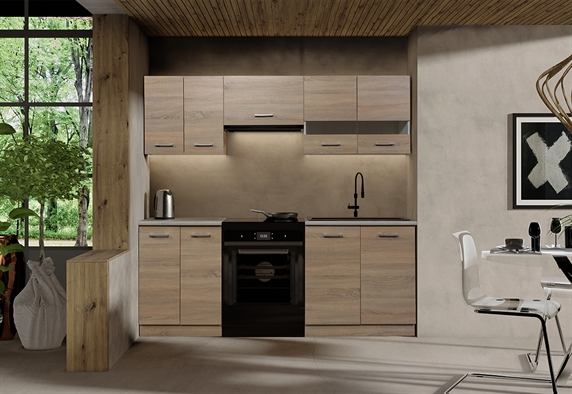 Έτοιμη Κουζίνα B&W Style Nevada Δρυς Μ200xΠ60xΥ57/85cm με Πάγκο