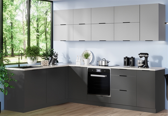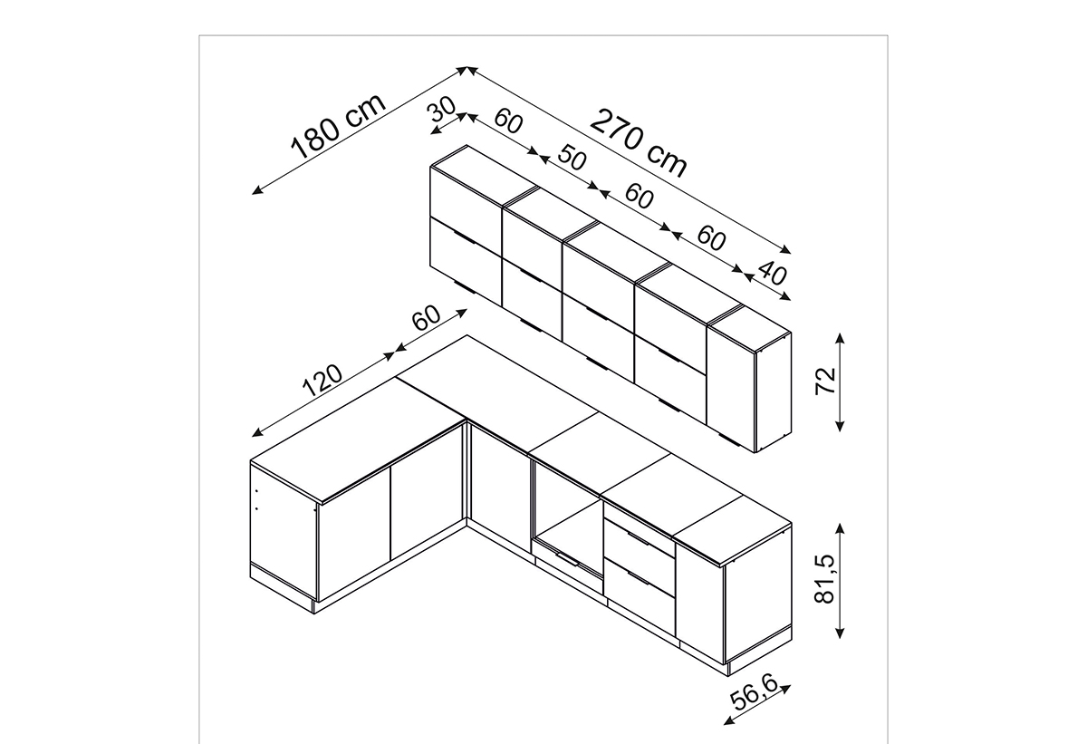 Έτοιμη Κουζίνα Γωνιακή B&W Style Sophie Γκρι για Εντοιχιζόμενες Συσκευές Μ270/180xΠ51.6xΥ72/85cm με Πάγκο