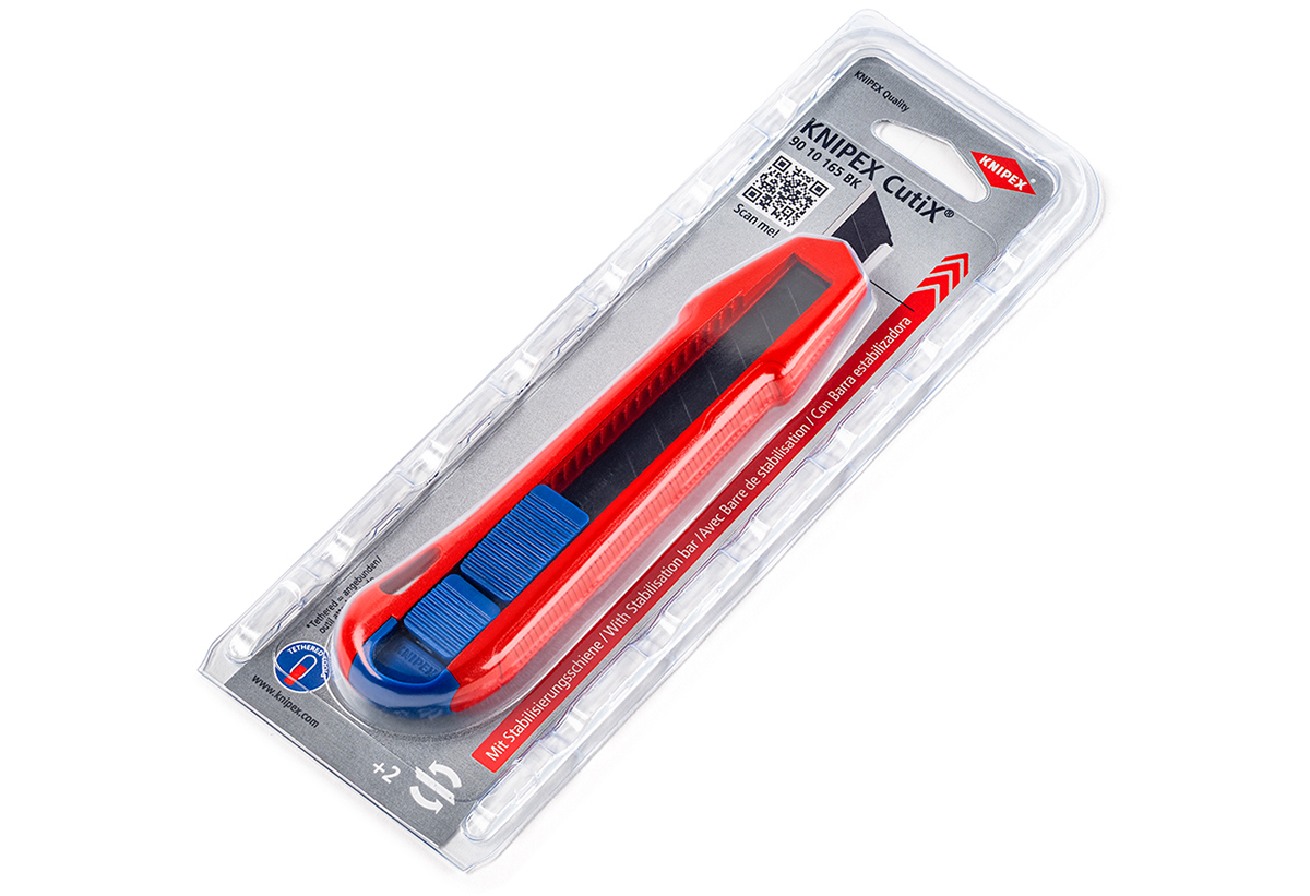 Εφαρμόζει άνετα στο χέρι, χάρη στο λεπτό σχήμα και τις πολλές ζώνες σύσφιξη. Οι πλακέ, εργονομικές ράγες ολίσθησης είναι ξεχωριστές για λάμα και οδηγό σταθεροποίησης και δεν ενεργοποιούνται κατά λάθος. Τέλος, η υποδοχή λάμας είναι εξαιρετικά ασφαλής. Προσφέρει αποτελεσματική συγκράτηση της λάμας, χάρη στον πίρο από σκληρυμένο χάλυβα. Όταν το πίσω άκρο της λαβής είναι κλειστό, ο συρόμενος οδηγός της λάμας και η λάμα δεν μπορούν να γλιστρήσουν προς τα έξω.