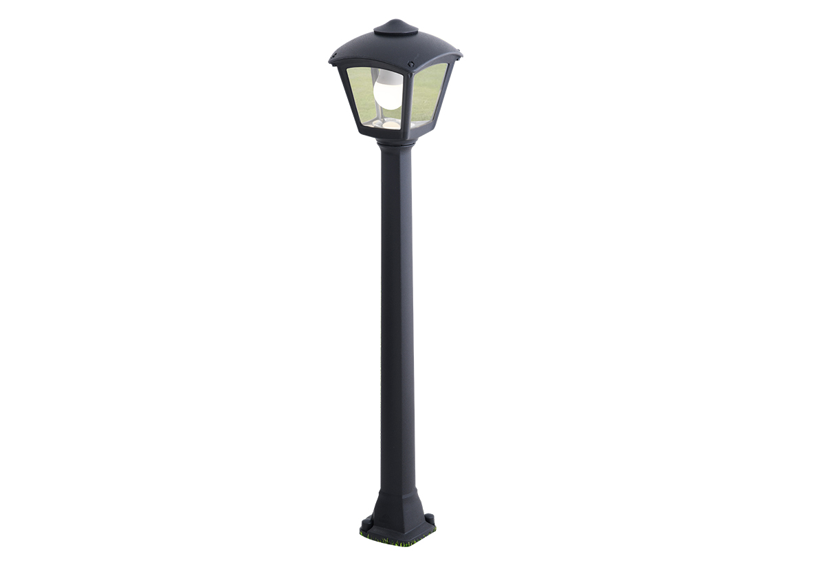 Κατασκευασμένη από ανθεκτικά υλικά και με βαθμό στεγανότητας IP55, αντέχει στις καιρικές συνθήκες και προσφέρει αξιόπιστο φωτισμό όλο τον χρόνο. Ο μοντέρνος σχεδιασμός της με τετράγωνη βάση και μαύρο φινίρισμα την καθιστά ιδανική για τοποθέτηση σε κήπους, διαδρόμους ή αυλές.