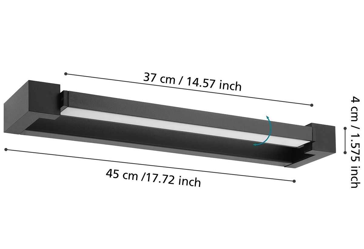Ολοκλήρωσε το μπάνιο σου με το φωτιστικό Eglo Gemiliana, που συνδυάζει κομψότητα και λειτουργικότητα. Με μοντέρνο σχεδιασμό και μίνιμαλ γραμμές, ταιριάζει ιδανικά πάνω από καθρέφτη μπάνιου, προσφέροντας άπλετο και στοχευμένο φως. Διαθέτει ενσωματωμένο LED που εξασφαλίζει φυσικό λευκό φωτισμό, ιδανικό για καθημερινές ανάγκες όπως το μακιγιάζ ή το ξύρισμα. Με εργονομικές διαστάσεις και προστασία IP44, είναι κατάλληλο για δωμάτια με υγρασία, ενώ το φινίρισμα σε ματ μαύρο προσθέτει μία μοντέρνα πινελιά στον χώρο σου. Επιπλέον, η ρύθμιση της κλίσης του φωτός σου δίνει τη δυνατότητα να κατευθύνεις τον φωτισμό σύμφωνα με τις ανάγκες σου. Προσφέρει ενεργειακή απόδοση και στιλ, για ένα μπάνιο που ξεχωρίζει.