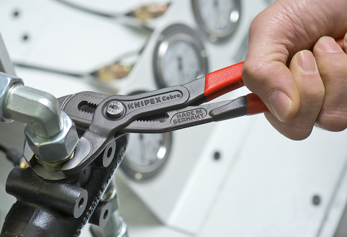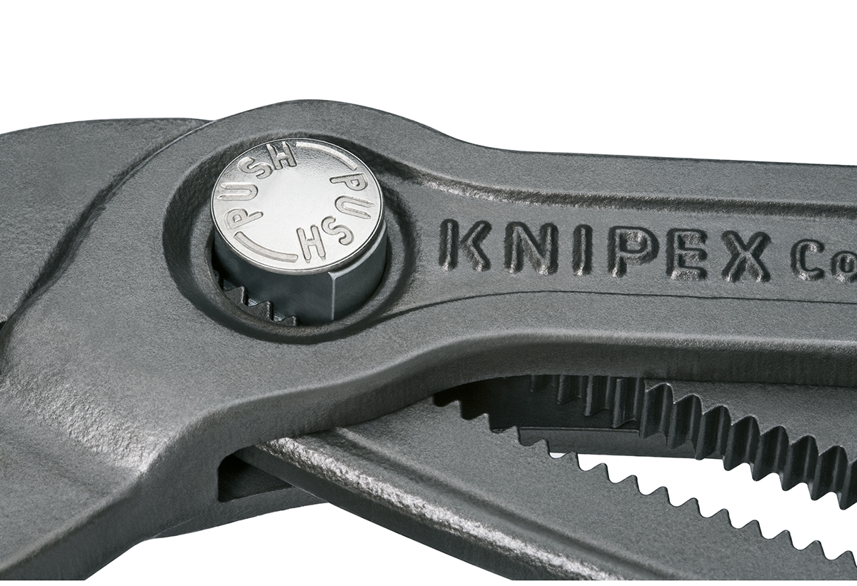 H συγκεκριμένη γκαζοτανάλια υψηλής τεχνολογίας ρυθμίζεται με το πάτημα του κουμπιού, απευθείας στο αντικείμενο. Η ρύθμιση ακριβείας εγγυάται τη βέλτιστη προσαρμογή σε αντικείμενα διαφόρων διαστάσεων, ενώ ο χειρισμός συνδυάζει όλα τα εργονομικά χαρακτηριστικά. Η αυτομπλοκαριζόμενη λειτουργία για σωλήνες και βίδες αποτρέπει το γλίστρημα του εξαρτήματος και διευκολύνει την εργασία. Οι επιφάνειες συγκράτησης διαθέτουν θερμικά επεξεργασμένη οδόντωση και σκληρότητα περίπου 61 HRC, προσφέροντας ασφαλή συγκράτηση και μεγάλη αντοχή στη φθορά. Η περαστή άρθρωση παρουσιάζει υψηλή σταθερότητα, χάρη στον διπλό οδηγό, ενώ η ρύθμιση κλειδώνει με τη βοήθεια του κουμπιού. Τέλος, το στοπ κλεισίματος προστατεύει τα δάκτυλα του χειριστή από τυχόν "μάγκωμα".