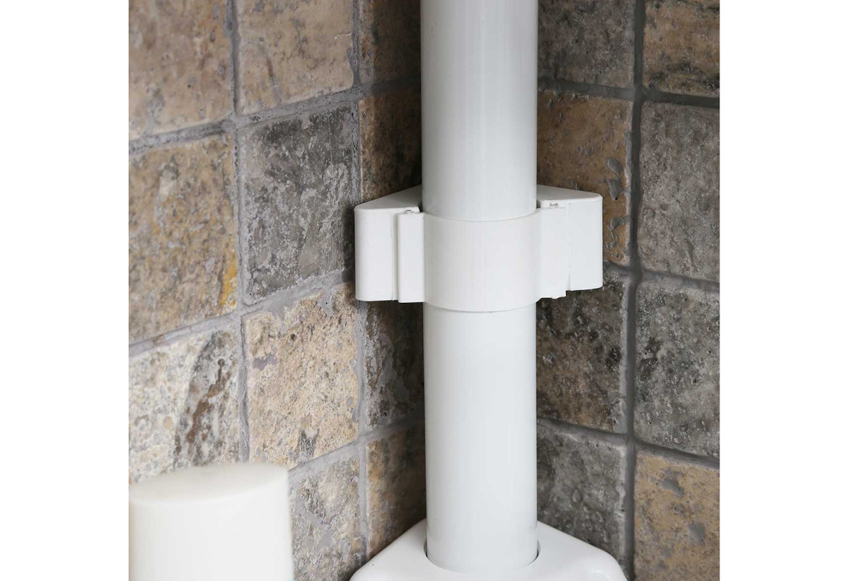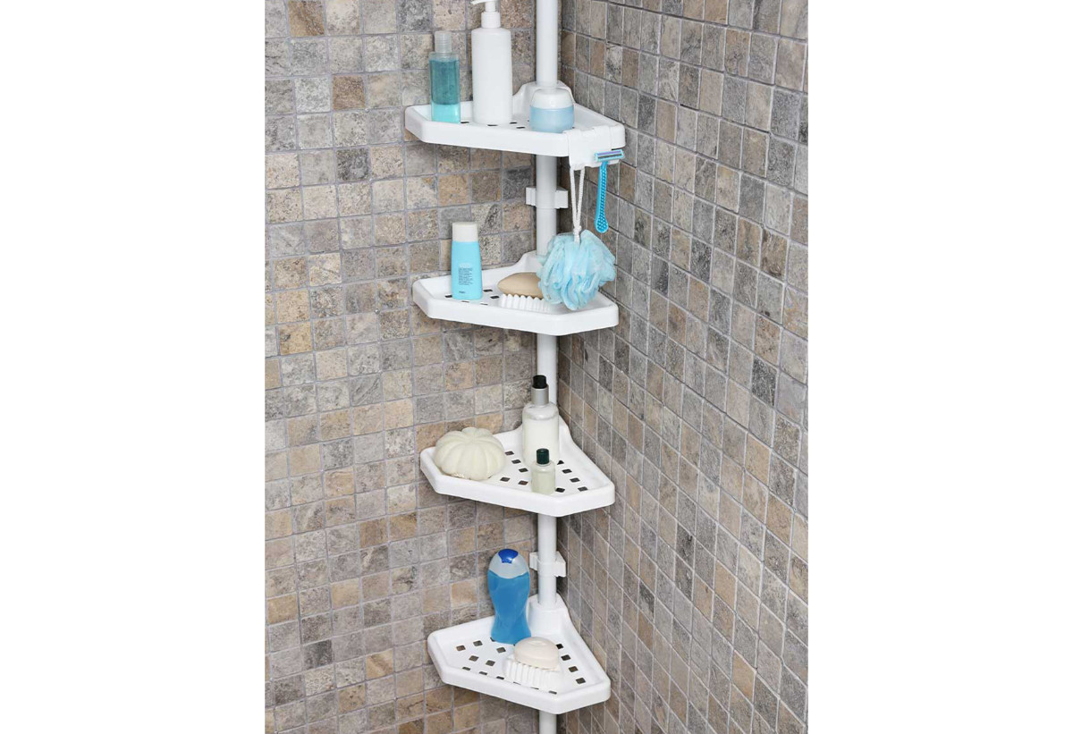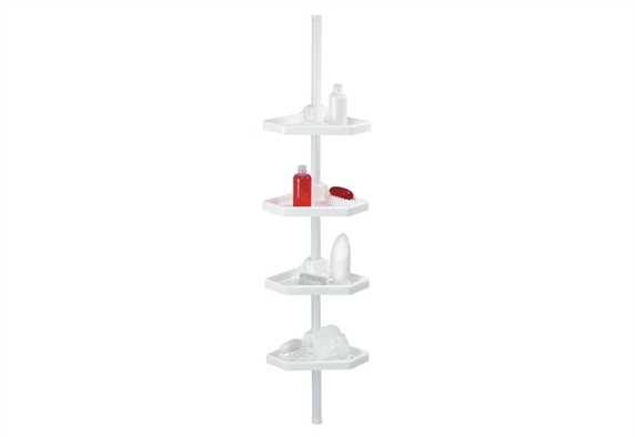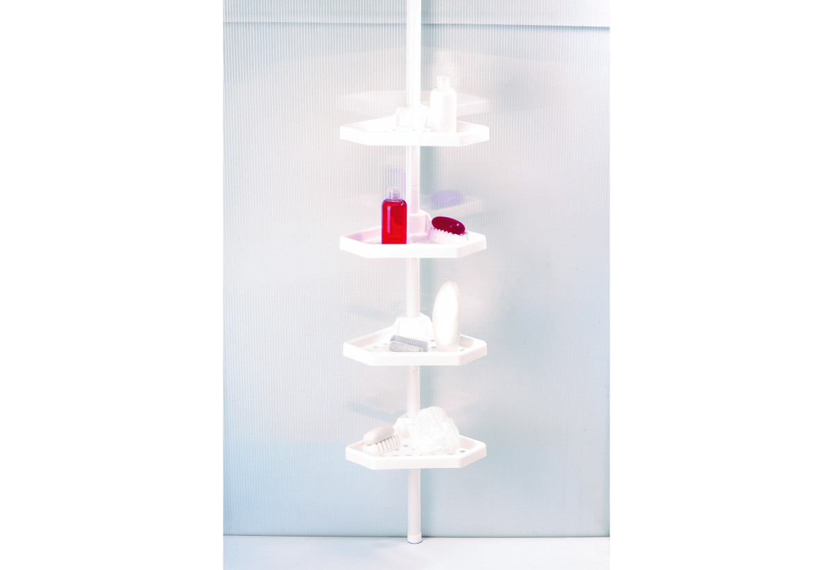 Η γωνιακή εταζέρα θα αποτελέσει μία πρακτική προσθήκη, για το μπάνιο σου. Διαθέτει 4 ράφια παρέχοντάς σου αρκετό χώρο για τα σαμπουάν και όλα τα αντικείμενα που χρειάζεσαι, κατά τη διάρκεια του ντους σου. Είναι κατασκευασμένη από πλαστικό για αντοχή στην υγρασία, ενώ έχεις τη δυνατότητα να ρυθμίσεις το ύψος της, από 135cm έως και 260cm, έτσι ώστε να την προσαρμόσεις ανάλογα με τον χώρο σου. Παράλληλα, η λευκή απόχρωσή της, θα προσαρμοστεί απόλυτα με την αισθητική της μπανιέρας σου.