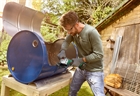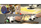 Εδώ απεικονίζεται ο χρήστης να λειμάρει μια μεταλλική επιφάνεια.