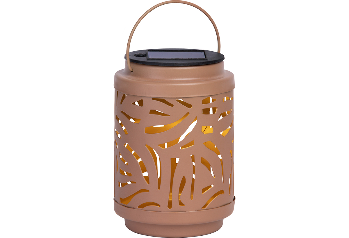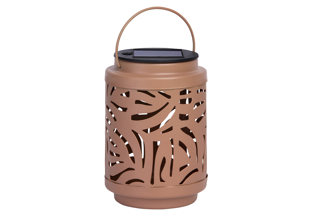 Το ηλιακό φαναράκι σε απόχρωση τερακότα προσφέρει ζεστό, θερμό φως που δημιουργεί εντυπωσιακά μοτίβα φωτισμού στο περιβάλλον, χάρη στο διάτρητο μεταλλικό σώμα του. Είναι εξοπλισμένο με διακόπτη για ευκολία στη χρήση, διαθέτει NiMH επαναφορτιζόμενη μπαταρία που σου εξασφαλίζει 6-8 ώρες αδιάκοπτου φωτισμού και έχει διαστάσεις 8.5x8.5x12.5cm, ιδανικές για να το τοποθετήσεις σε τραπέζια, σκάλες ή να το κρεμάσεις.