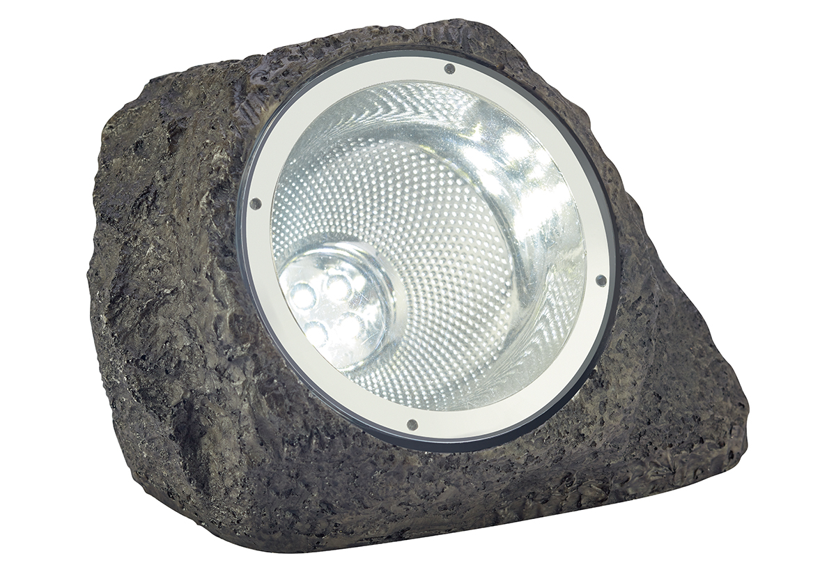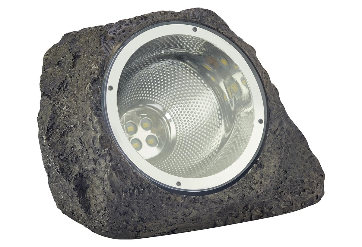 Το φωτιστικό διαθέτει σχεδιασμό που θυμίζει φυσική πέτρα σε απόχρωση του γκρι, ώστε να ενσωματώνεται αρμονικά στον κήπο ή το παρτέρι. Παράγει θερμό φως, ιδανικό για βραδινή χαλάρωση, ενώ λειτουργεί με ηλιακή ενέργεια και επαναφορτιζόμενη μπαταρία τύπου NiMH.