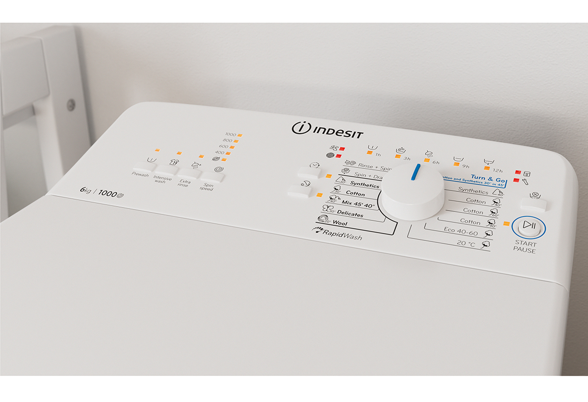 Αυτό το ελεύθερο πλυντήριο άνω φόρτωσης είναι η ιδανική λύση για μικρούς χώρους. Διαθέτει μεγάλη χωρητικότητα 6 κιλών και υψηλή, οικονομική ταχύτητα στυψίματος 1000 περιστροφών ανά λεπτό. Είναι εύκολο στον χειρισμό, χάρη έυχρηστο πίνακα ελέγχου, ενώ προσφέρει 14 διαφορετικά προγράμματα για μέγιστη ευελιξία.