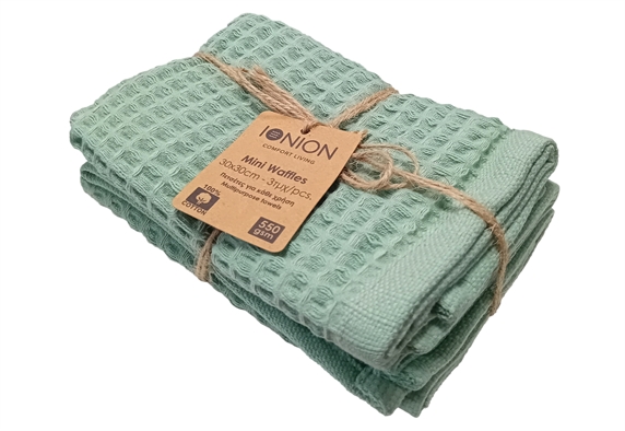 Ionion Mini Waffle Σετ Πετσέτες Κουζίνας 30x30cm Πράσινο Ανοιχτό 3τμχ