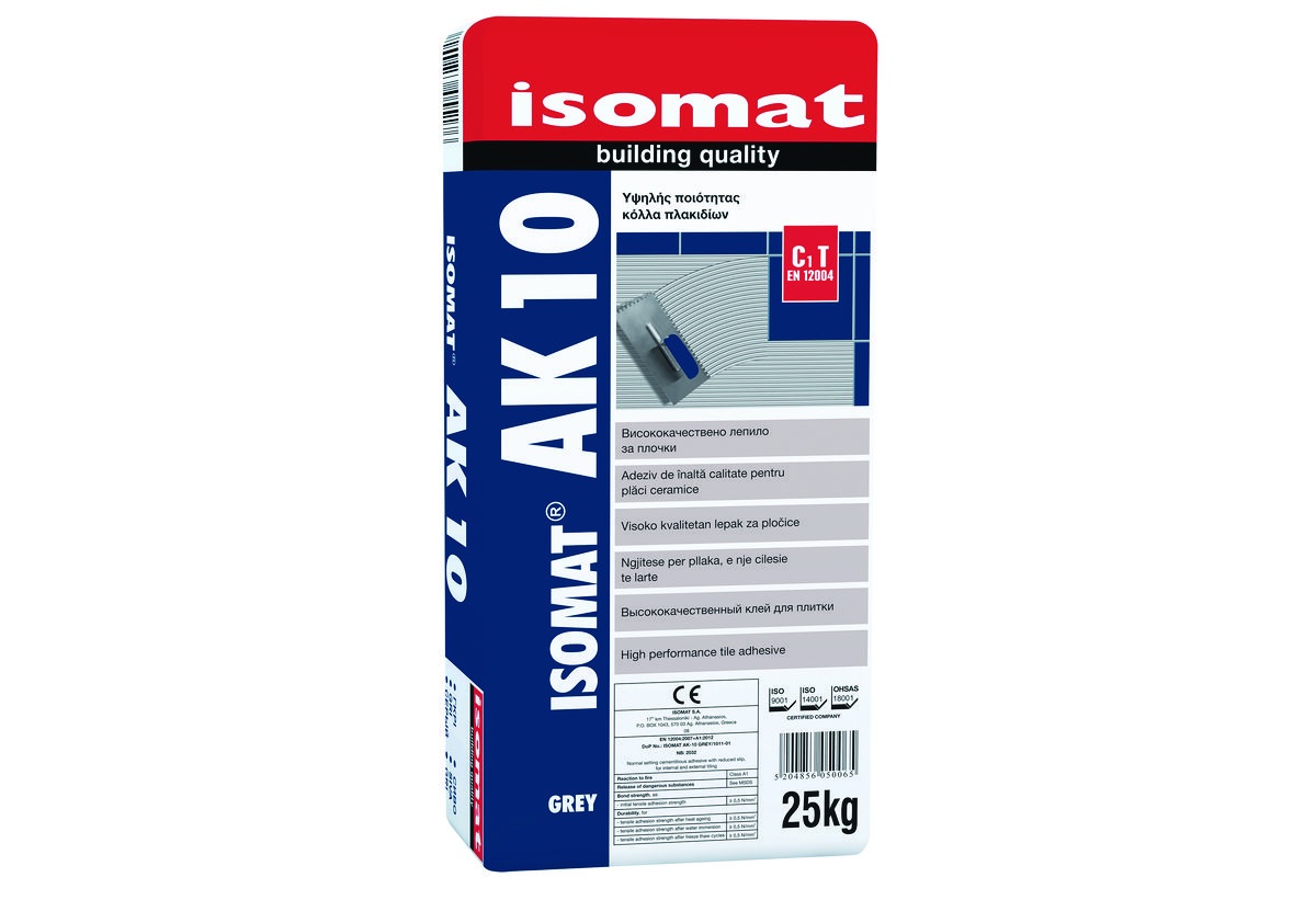 Isomat AK-10 Κόλλα Πλακιδίων Γκρι 25kg C1 Τ