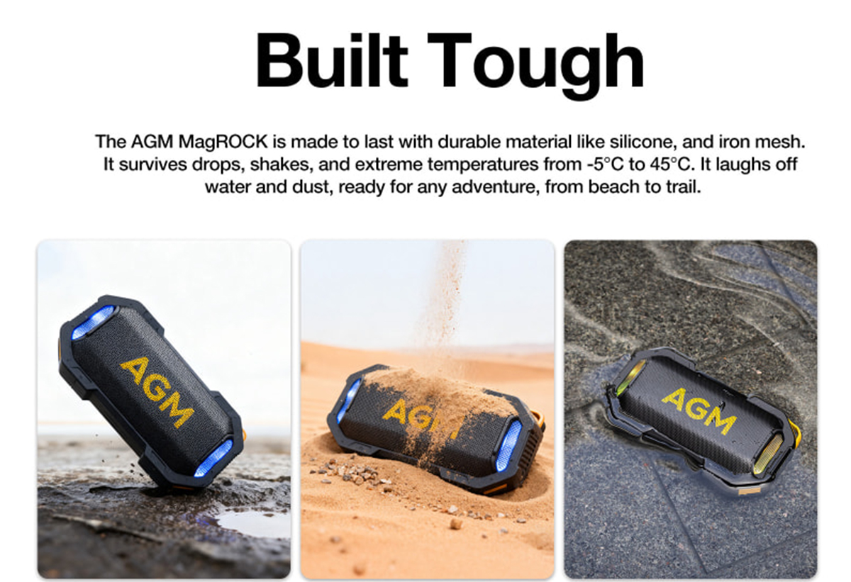 Διαθέτει μαγνητική βάση στήριξης με δυνατούς μαγνήτες για γρήγορη τοποθέτηση σε μεταλλικές επιφάνειες. Επιπλέον, είναι ανθεκτικό στο νερό και επιπλέει, για χρήση σε πισίνα ή λίμνη, γεγονός που το καθιστά ιδανικό για τις καλοκαιρινές διακοπές. Ο δυνατός του ήχος είναι αρκετά “γεμάτος” για indoor και outdoor ακρόαση, ενώ διαθέτει προστασία με σιλικόνη και ατσάλινο πλέγμα για πιο σκληρή χρήση. Τέλος, η ματαρία 1800mAh προσφέρει έως και 10+ ώρες αναπαραγωγής (σε περίπου 70% ένταση), ενώ λειτουργεί σε εύρος θερμοκρασίας περίπου -5°C έως 45°C.