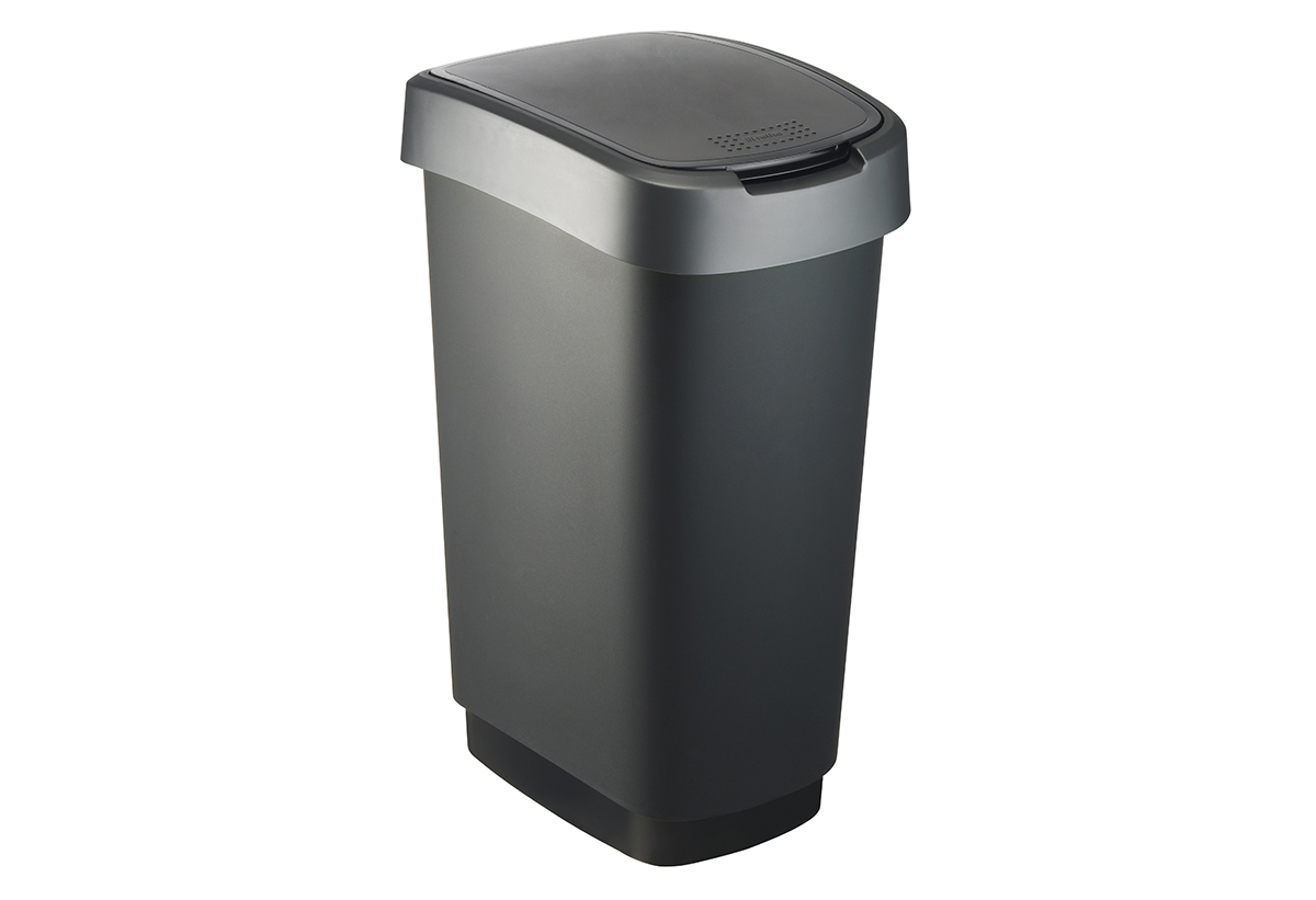 Κάδος Απορριμμάτων Rotho Twist Πλαστικός 50lt Γραφίτης/Σκούρο Ασημί