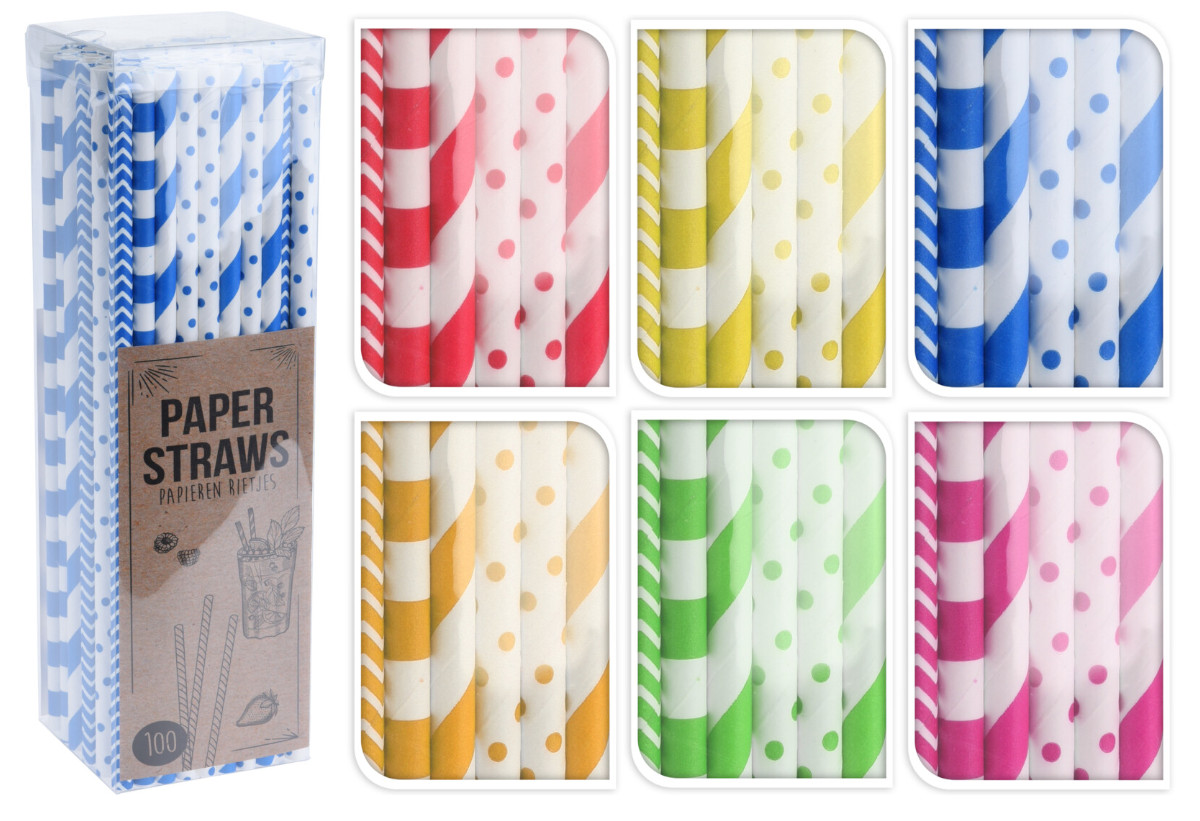 Καλαμάκια Χάρτινα σε Διάφορα Χρώματα 100 Τεμάχια