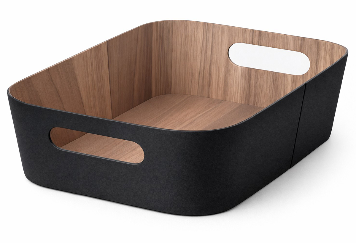 Καλάθι Αποθήκευσης Espiel Μαύρο με Εσωτερική Υφή Ξύλου Μ26xΠ18xΥ11cm