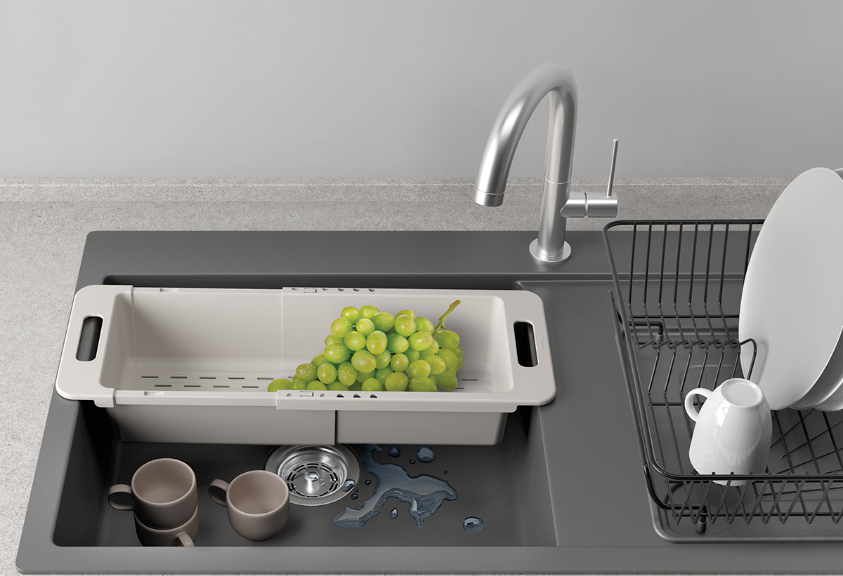 Οργάνωσε τον νεροχύτη σου έξυπνα με το Drain-Flex: ένα πρακτικό, πλαστικό καλάθι που απλώνεται από μήκος 35 έως 52cm για να εφαρμόζει σε διαφορετικούς νεροχύτες και να «κάθεται» σταθερά στις άκρες τους. Οι διάτρητες επιφάνειες στραγγίζουν γρήγορα το νερό, ιδανικά για να πλένεις και να στεγνώνεις φρούτα και λαχανικά, να αφήνεις σφουγγάρια και βουρτσάκια να στεγνώσουν ή να ακουμπάς μαχαιροπίρουνα και φλιτζάνια μετά το πλύσιμο. Προσφέρει άνετο χώρο χωρίς να πιάνει τον πάγκο, καθαρίζεται εύκολα και αντέχει στην καθημερινή χρήση. Ένα ευέλικτο αξεσουάρ που κρατά την κουζίνα τακτοποιημένη και τον νεροχύτη σου πιο λειτουργικό.