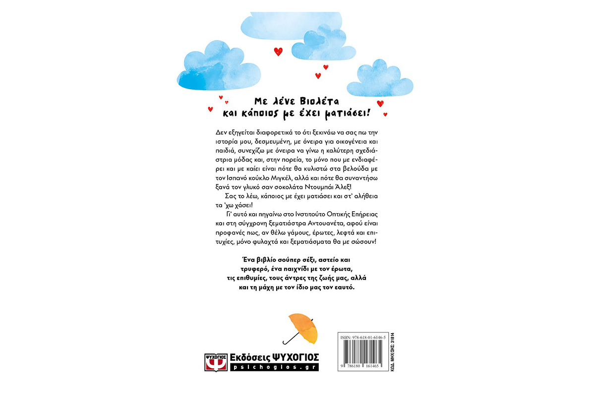 Με λένε Βιολέτα και κάποιος με έχει ματιάσει! Δεν εξηγείται διαφορετικά το ότι ξεκινάω να σας πω την ιστορία μου, δεσμευμένη με όνειρα για οικογένεια και παιδιά, συνεχίζω με όνειρα να γίνω η καλύτερη σχεδιάστρια μόδας και, στην πορεία, το μόνο που με ενδιαφέρει και με καίει είναι πότε θα κυλιστώ στα βελούδα με τον Ισπανό κούκλο Μιγκέλ, αλλά και πότε θα συναντήσω ξανά τον γλυκό σαν σοκολάτα Nτουμπάι Άλεξ!