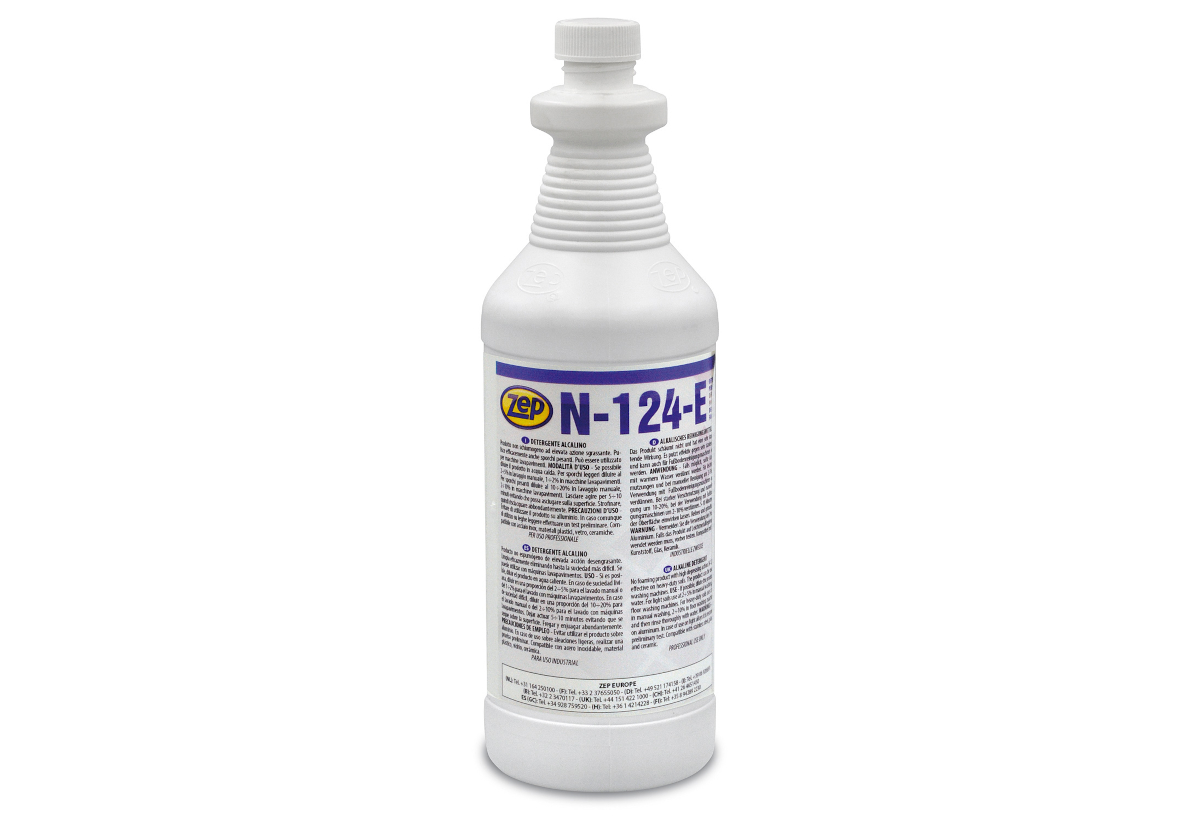 Το Ν-124-Ε είναι ένα απολιπαντικό καθαριστικό μέτριας αλκαλικότητας που προσφέρει δυναμικό βαθύ καθαρισμό. Είναι κατάλληλο και μπορεί να χρησιμοποιηθεί για να καλύψει τις ειδικές ανάγκες μίας βιομηχανίας τροφίμων. Ιδανικό για πορσελάνες, πορώδη δάπεδα, μηχανήματα της βιομηχανίας τροφίμων. Ακόμα, μπορεί να χρησιμοποιηθεί ως απολιπαντικό λαμαρίνας και εξαρτημάτων εργαστηρίου και όπου αλλού απαιτείται πιο δυναμικός καθαρισμός.