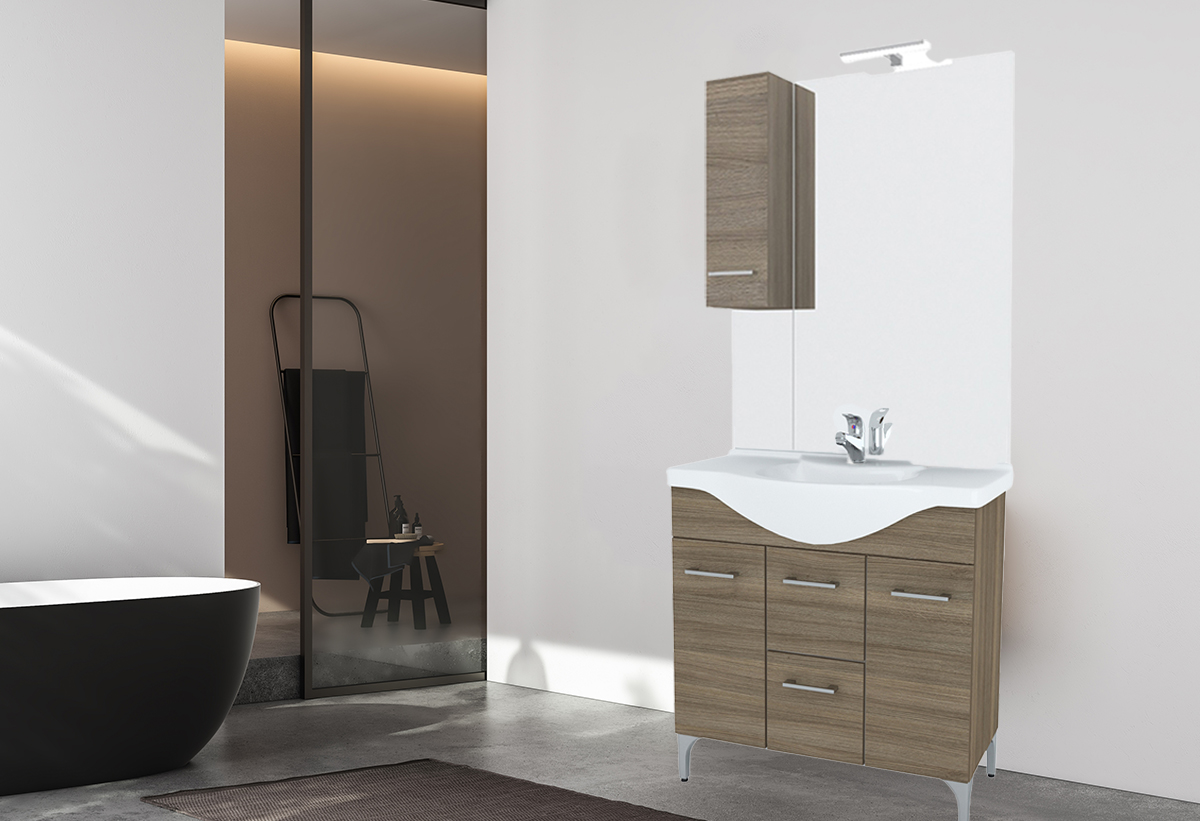 Καθρέπτης Επίπλου Μπάνιου Rubino Rovere Fumo 86cm με Αριστερό Ερμάριο